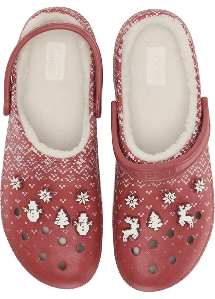 Crocs Classic Lined Holiday Christmas Charm Clogs Red Mens Size 10 - Women’s 12