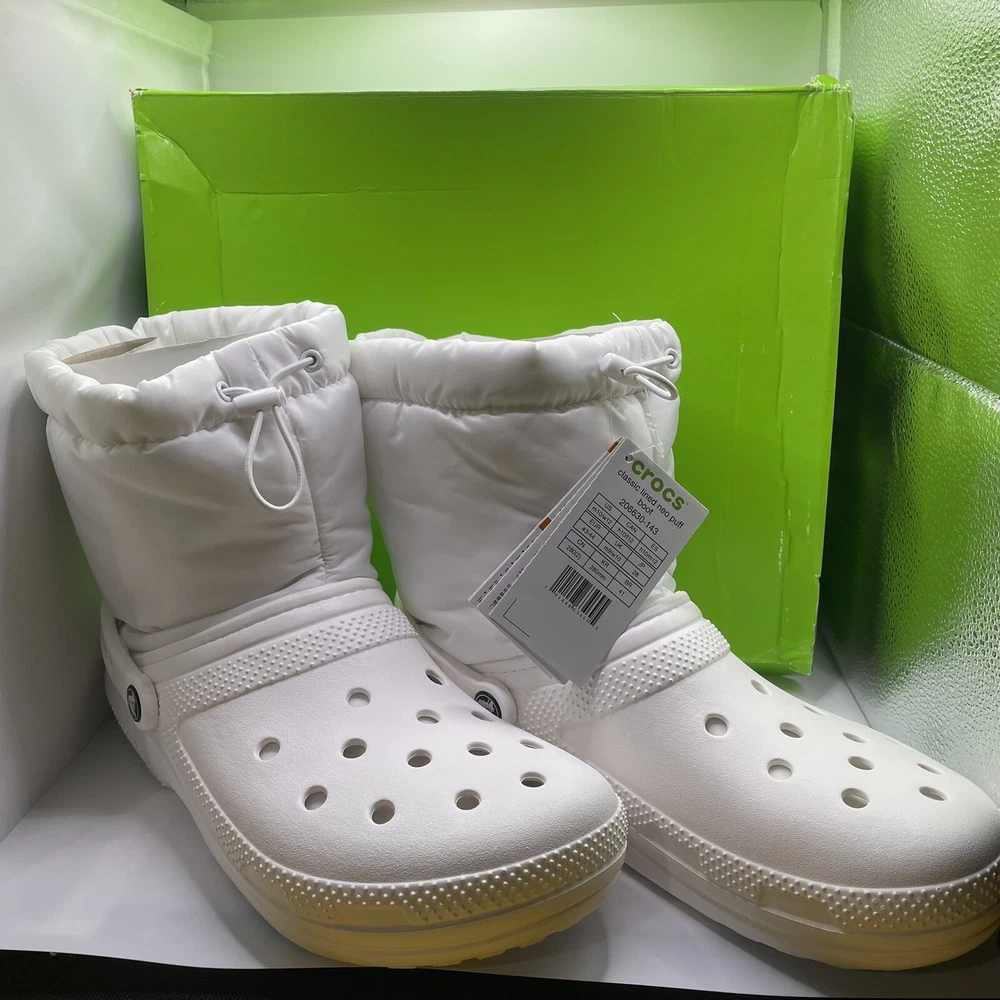 HomeCrocs Classic Lined Neo Puff Boots Men 10 Women 12 White Winter