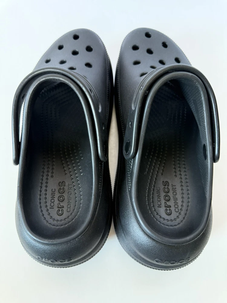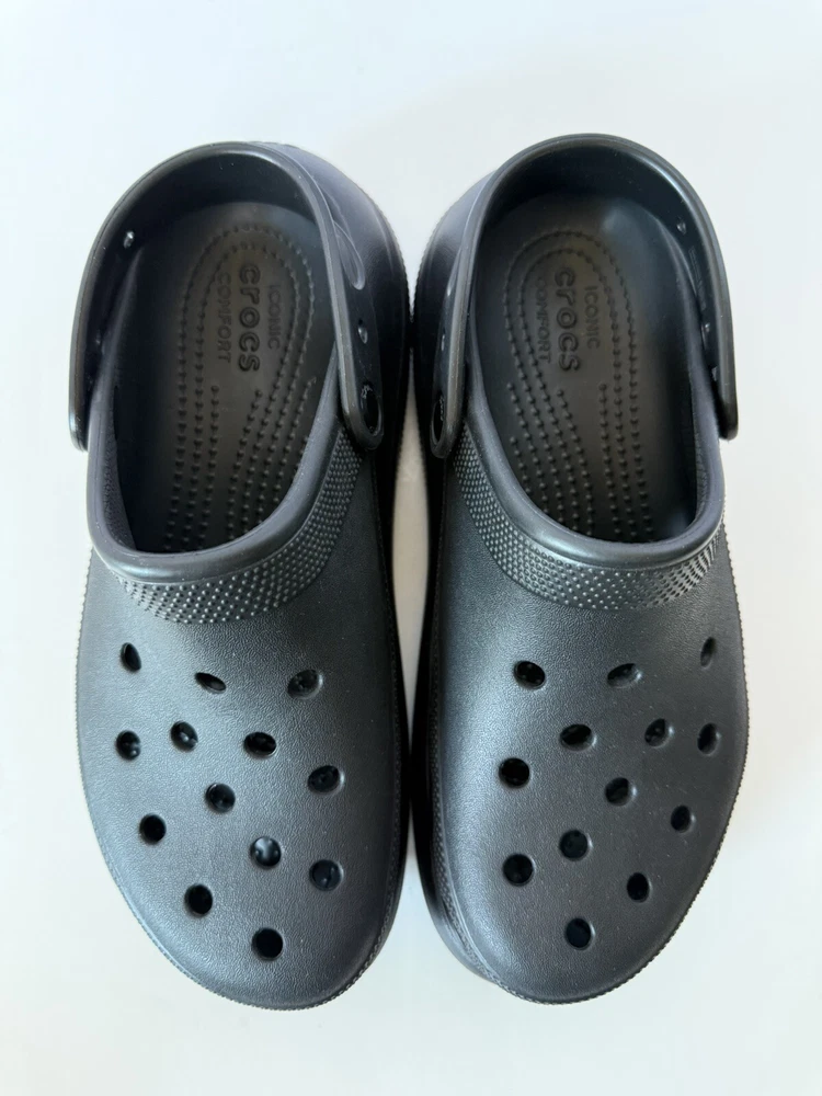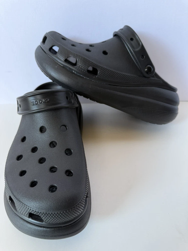 Crocs Classic Mega Crush Black Platform Clogs Sandals Womens 10 Men’s 8. Condition is Pre-owned. Shipped with FedEx Ground or FedEx Home Delivery.