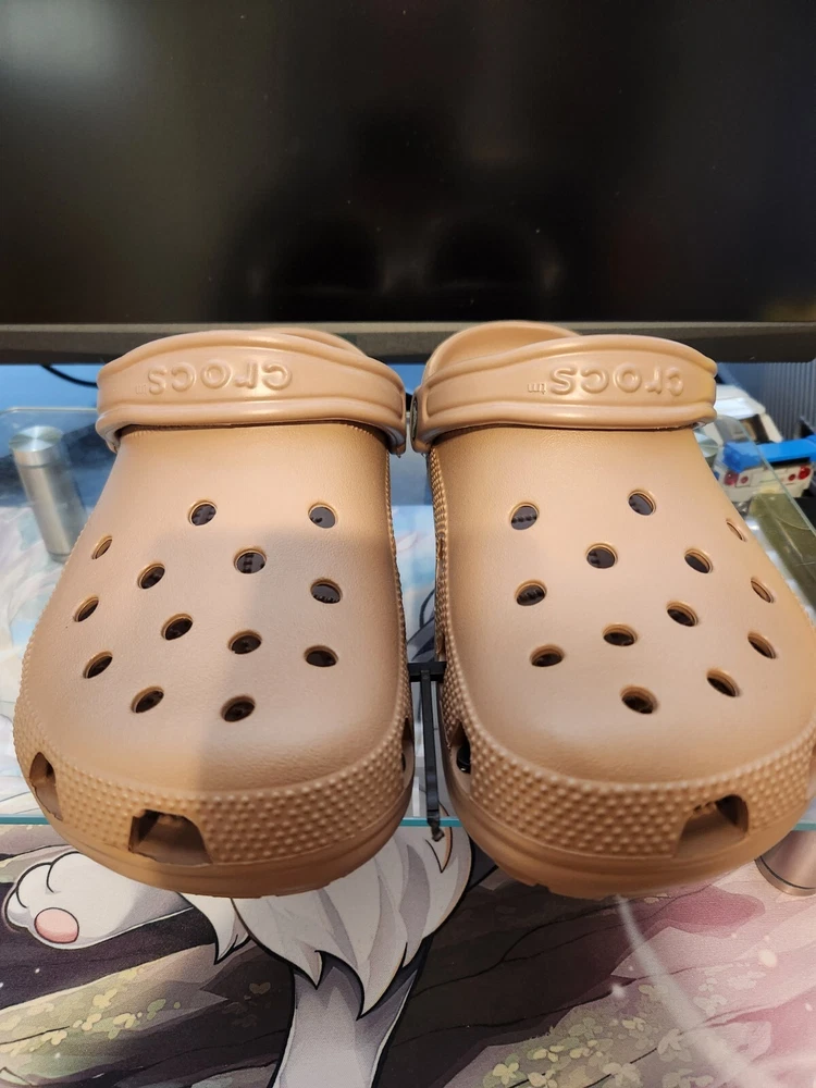 Elevate your summer style with these brown Crocs Classic clogs. Designed for both men and women, these lightweight and comfortable shoes feature a round toe shape and slip-on closure for easy wear. The synthetic upper material and lining ensure durability and longevity, while the standard shoe width fits most foot sizes. Perfect for casual occasions, these Crocs clogs boast a solid pattern and are suitable for fall, spring, and summer seasons. The outsole material is also synthetic, providing sturdy support for everyday wear. Add a touch of comfort to your wardrobe with these timeless and stylish Crocs Classic clogs.