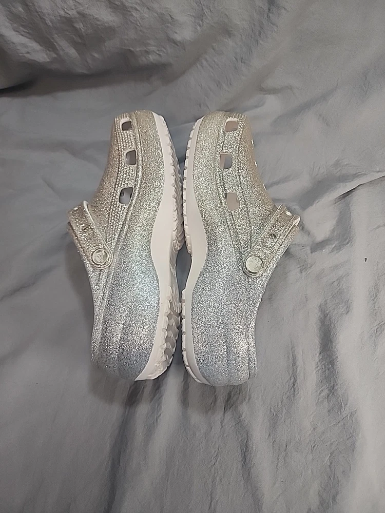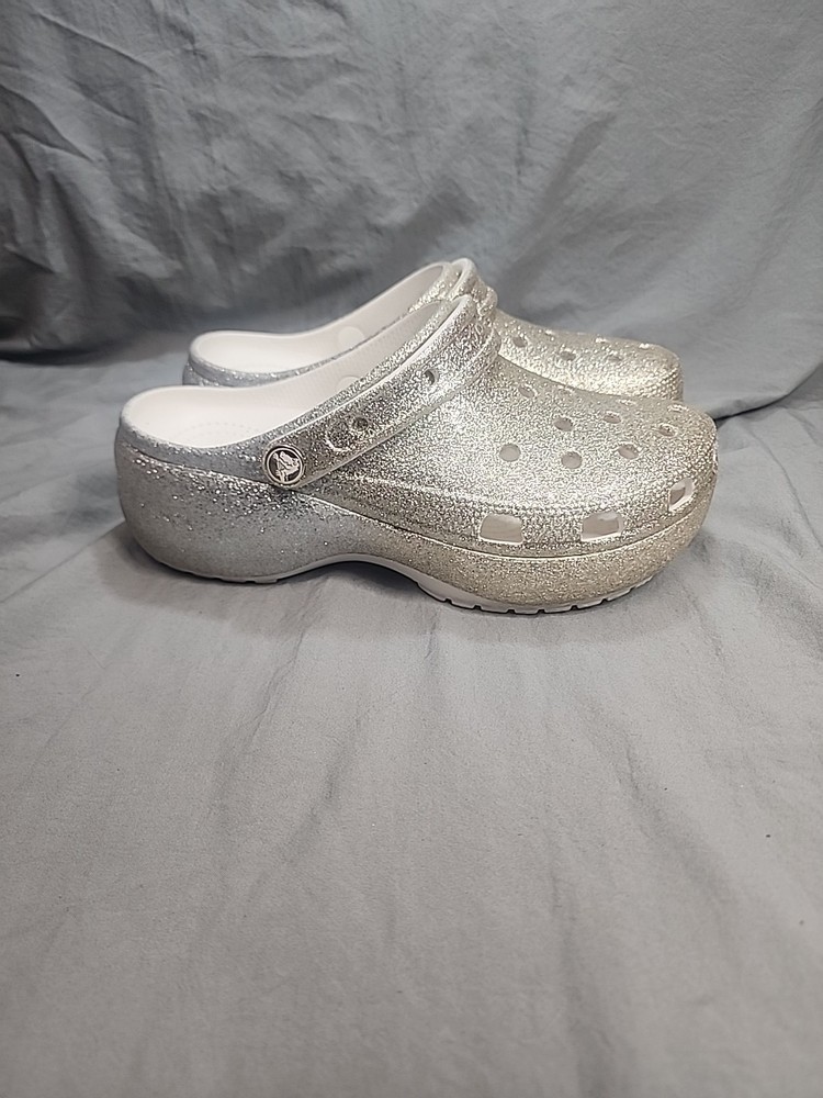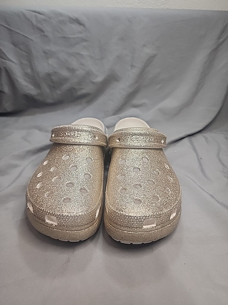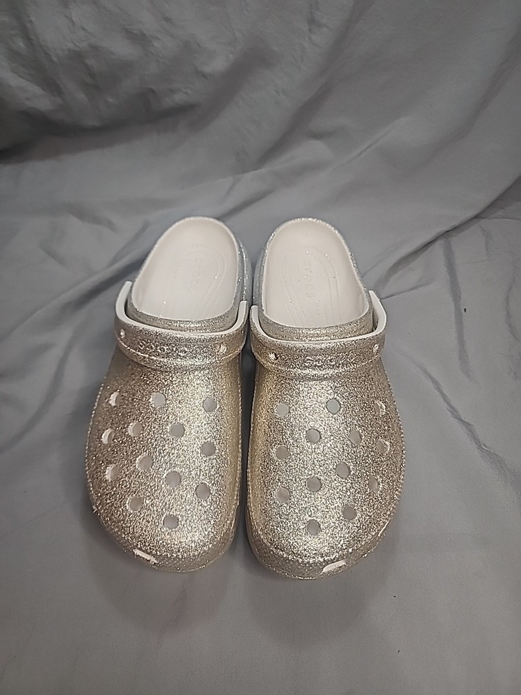 Crocs Classic Platform Glitter Ombre Clog Women’s size 9 Gold/Silver . Condition is Pre-owned. Shipped with USPS Ground Advantage.