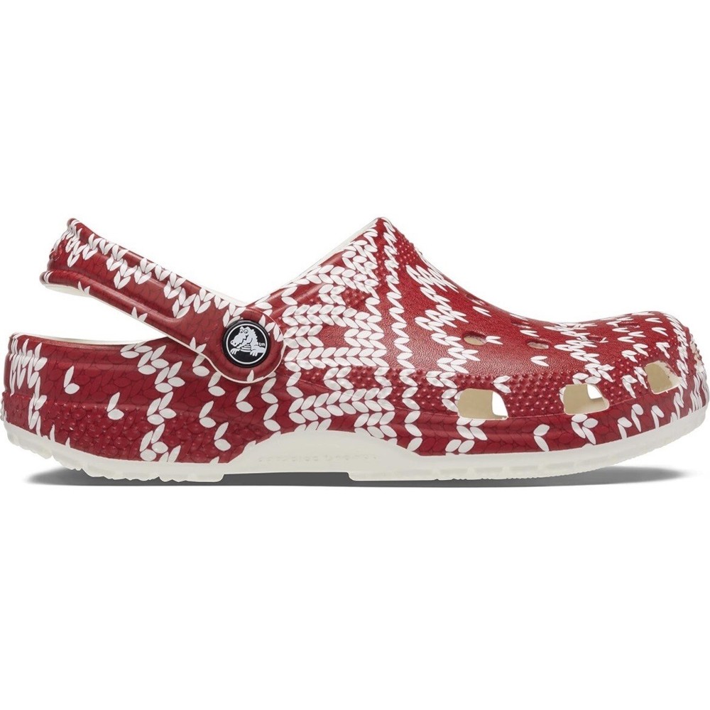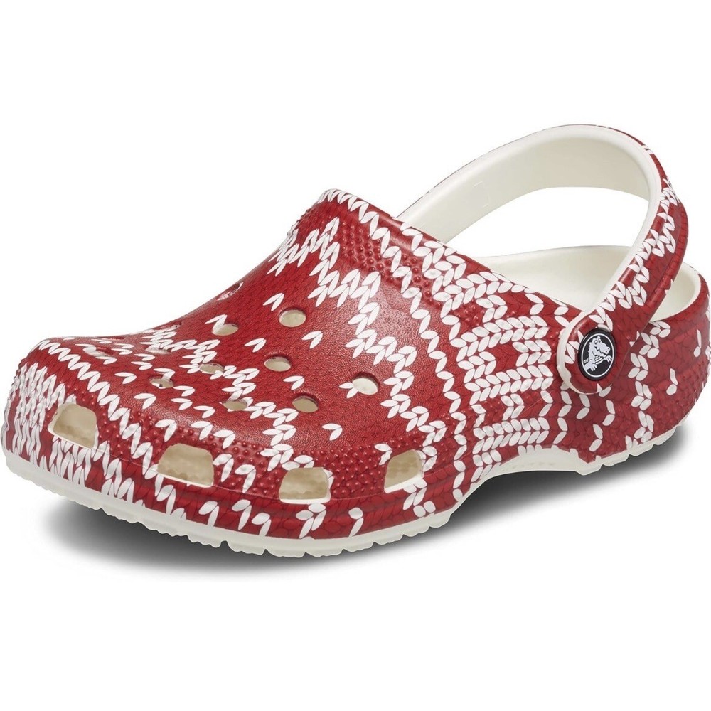 Crocs Classic Red White Clogs Holiday Christmas Sweater Womens Size 11 - Mens 9