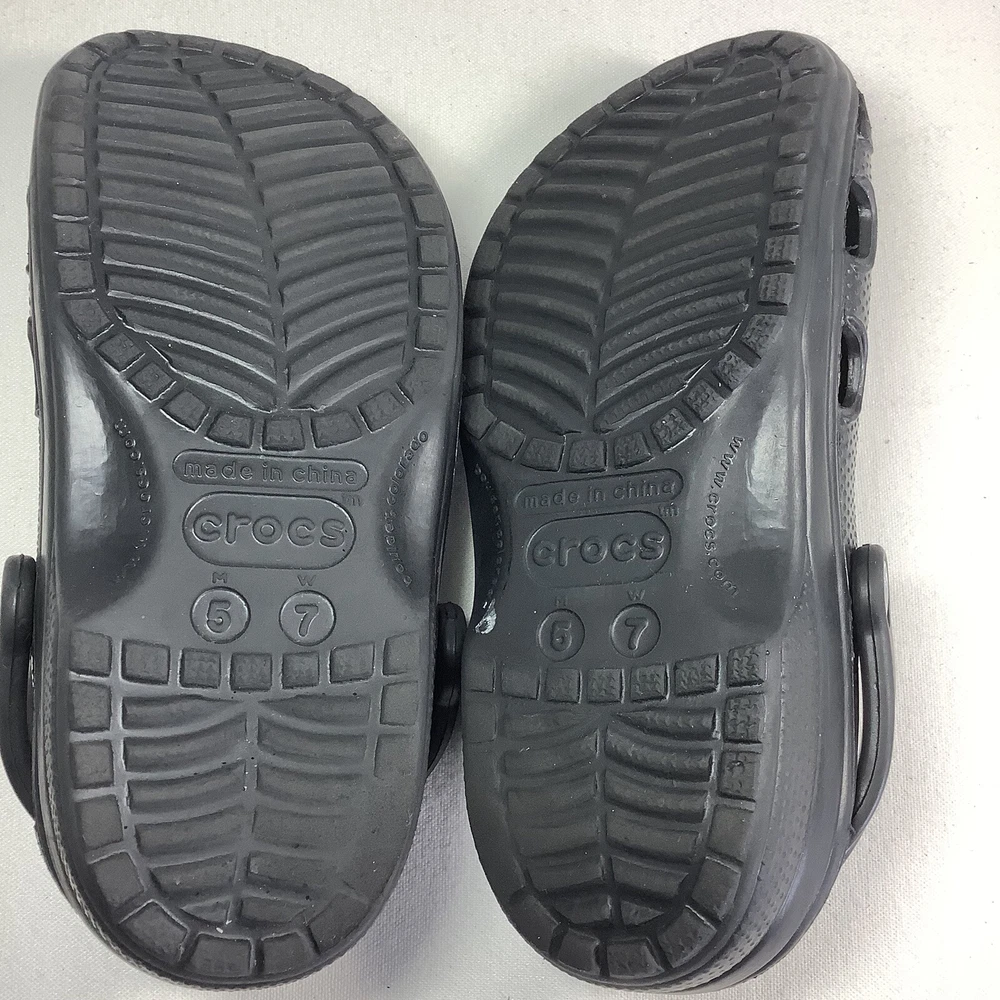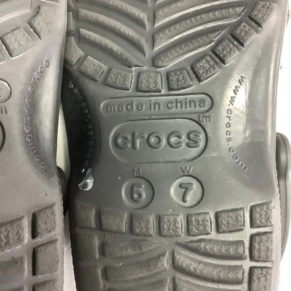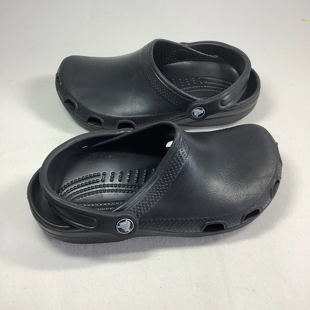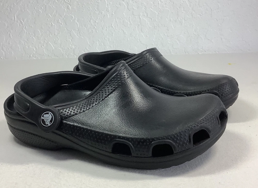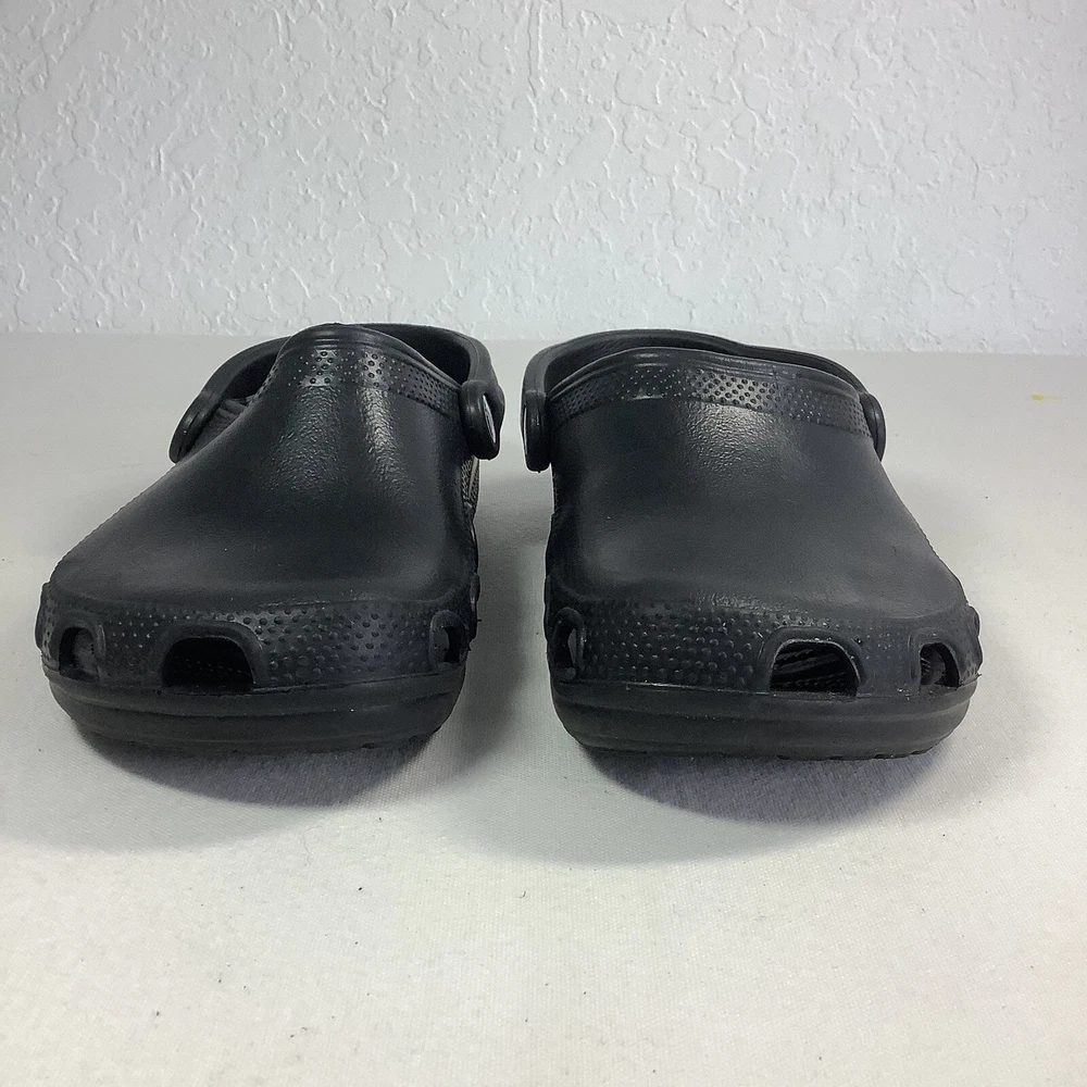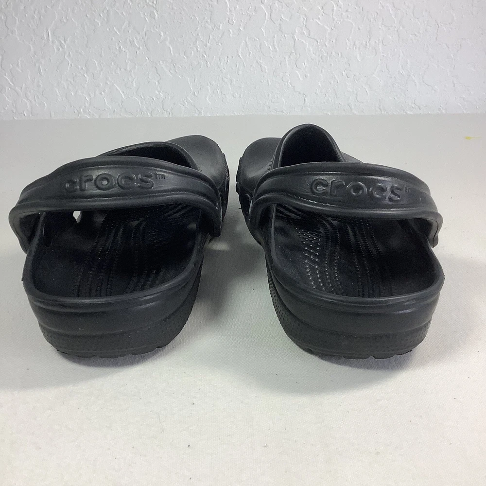 Crocs Crocband Men/Women Size 5/7 Water Rain Shoes Sandals Slide Black Rubber Solid Black Crocs Pre-owned. Clean, washed and ready to wear. No major flaws detected. - Slide Black Rubber - Slip on - Men’s 5 Women’s 7 - See all pics for any wear. no rips or tears -Please inspect photos to approve condition. - From Smoke Free Environment - Item shown is the exact item you will receive. -Open to offers -FAST SHIPPING **SHIPS FROM FLORIDA :) Sandals, classic, black, Crocs,