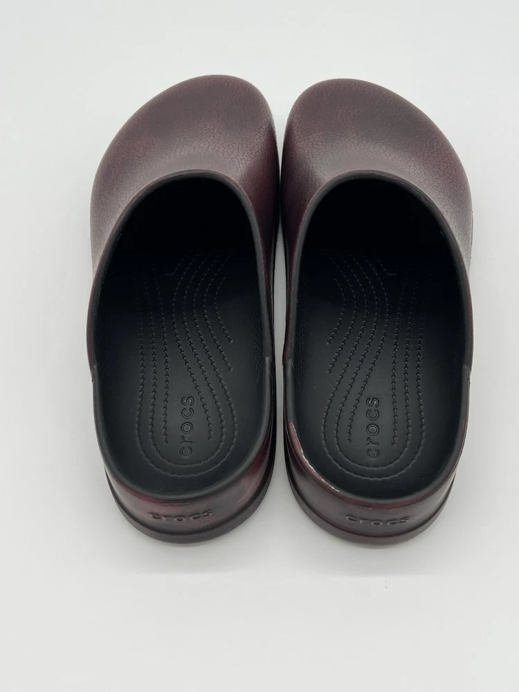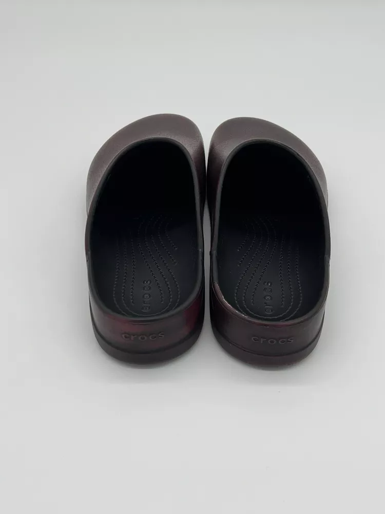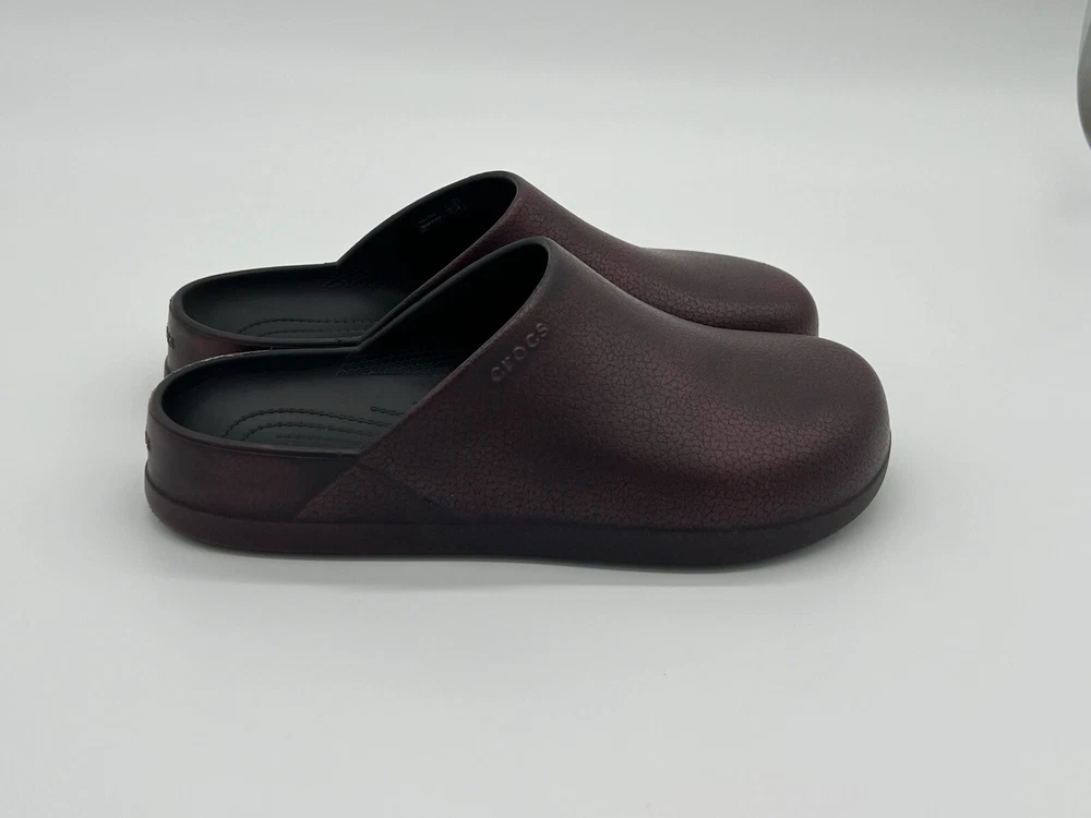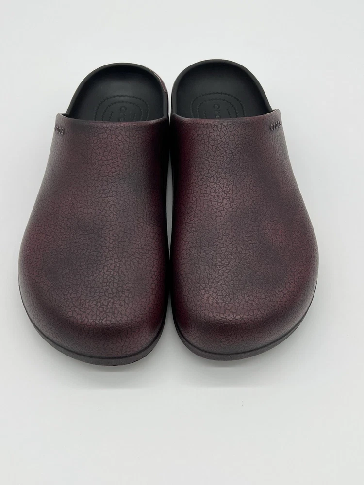 Crocs Dylan Men's Size 11 Burnished Clogs Dark Cherry Comfort Loafer Slides. Shoes are in used condition and have signs of wear but shoes are still in great condition. Upper material is in excellent condition and very clean , inside is clean and the soles are in great condition. Nice comfortable shoes for casual wear. Condition is pre-owned. Shipped with usps priority mail. Sold as pictures. Thank you! Feel free to message me for any questions. Thank you