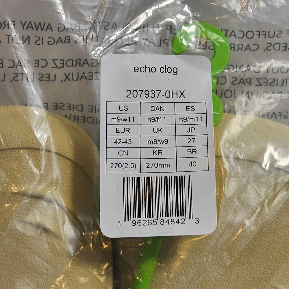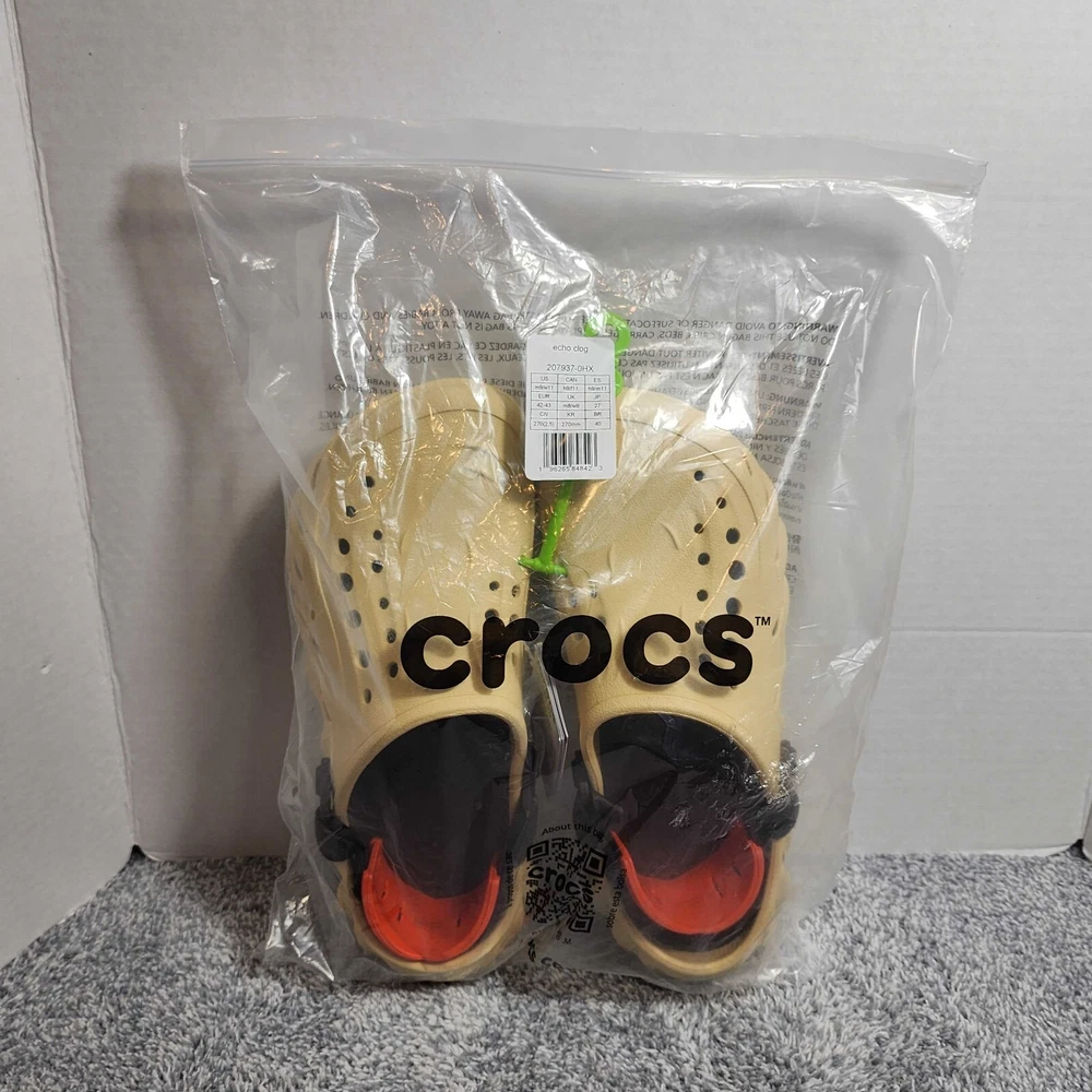 Crocs Echo Clogs - Unisex - Size Men's 9 Women's 11 - Sesame - 207937-0HX - New in Bag FAST FREE SHIPPING!