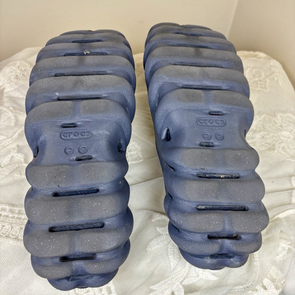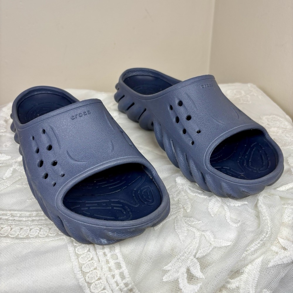 Made with lightweight and breathable materials, these sandals are perfect for beach and holiday wear, as well as casual and activewear. The synthetic upper and lining materials, along with the rubber outsole, ensure durability and comfort for all-day wear. These unisex adult sandals in men's sizes 5 also fits women's size 7, with a standard shoe width. The Crocs Echo Sliders are a limited edition product, with vent ports that provide breathability and a Croslite material that adds to the overall comfort.