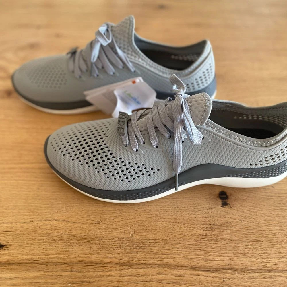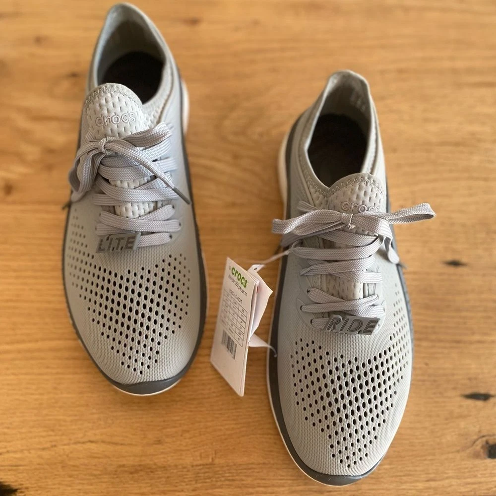 Crocs LiteRide Lace Up Sneakers Gray Men's 11 NWT Stylish Crocs LiteRide sneakers. Comfortable and breathable design. Perfect for casual wear. Ships next day from Oregon Smoke free