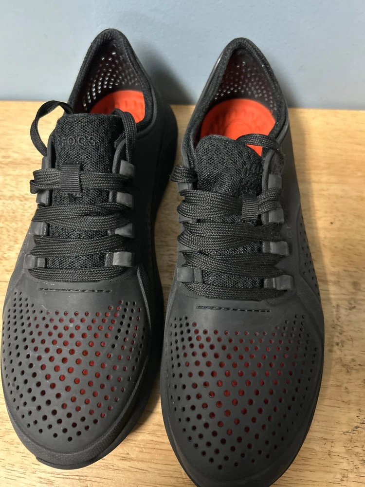 Crocs LiteRide Men’s Pacer All Black Lace Up Comfort Casual Shoes 204967 Size 8. Condition is Pre-owned. Shipped with USPS Ground Advantage.