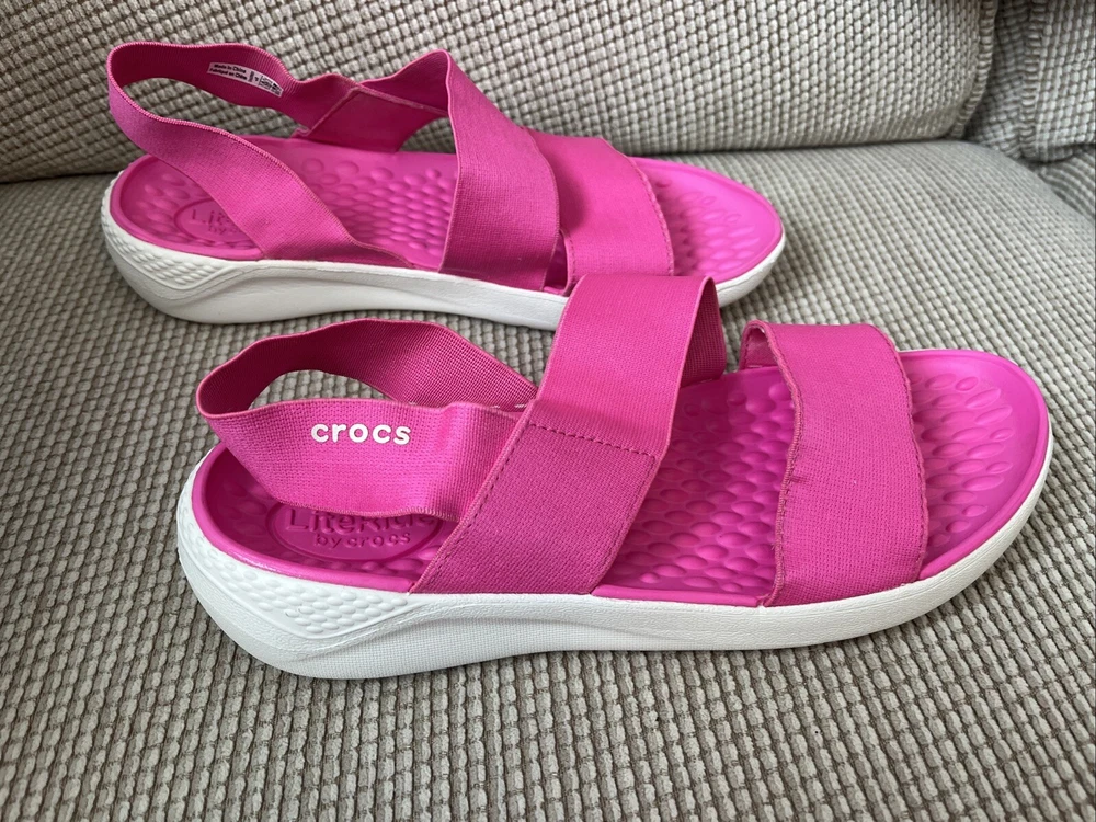 These Crocs LiteRide Stretch sandals are the perfect addition to your summer footwear collection. With a slip-on closure and flat heel style, they provide both comfort and convenience. The solid pink color and Crocs logo accents make them a stylish choice for any casual occasion. These sandals are designed with a comfort strap and stretch features, making them perfect for women's size 8. Whether you're running errands or going to the beach, these Crocs LiteRide Stretch sandals are a must-have. Add them to your cart now and experience the ultimate comfort and style.