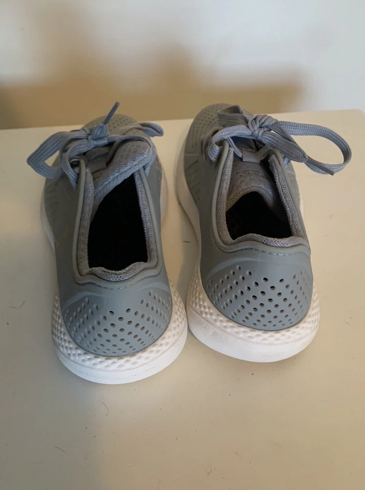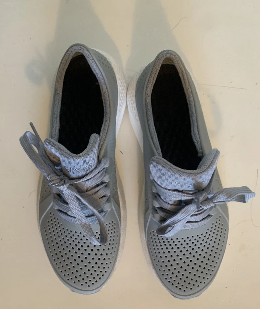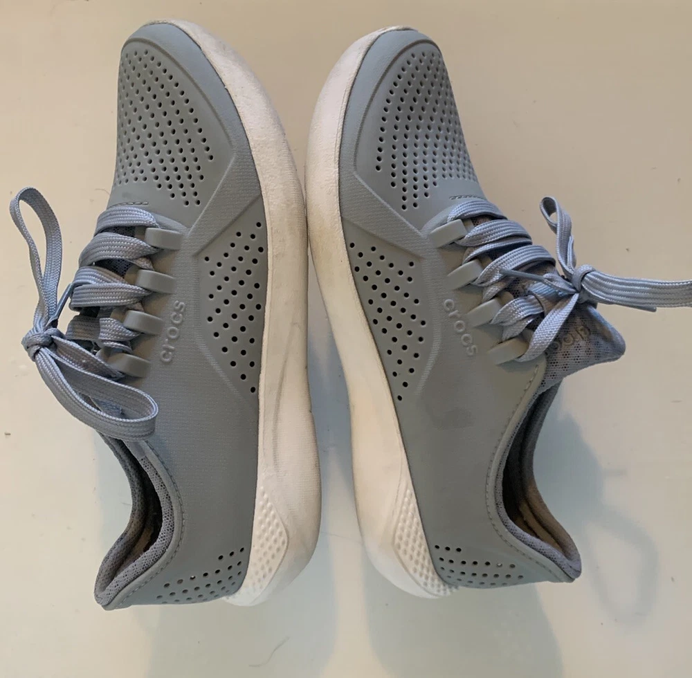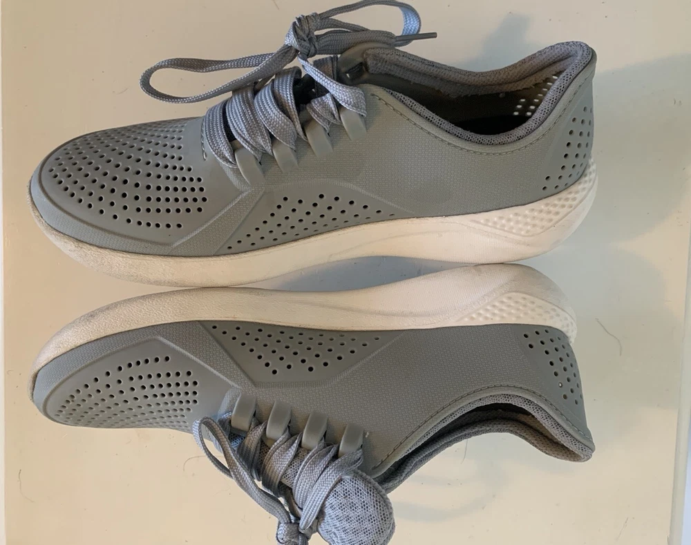 All visual flaws shown in photos, normal signs of wear. From a pet-free and smoke-free home. All details shown in photos. Will accept all reasonable offers! Elevate your casual shoe game with these Crocs Literide Pacer sneakers. Designed for men, these sneakers come in a stylish gray and white colorway that is perfect for any casual outfit. The Crocs brand is known for its comfort and durability, making these sneakers a great choice for everyday wear. Featuring a size M6 fit, these sneakers are perfect for any man looking for a comfortable and stylish shoe. The sneaker style and casual design make them perfect for any occasion, whether it's a day out with friends or a casual workday. Don't miss out on the chance to add these Crocs Literide Pacer sneakers to your shoe collection.