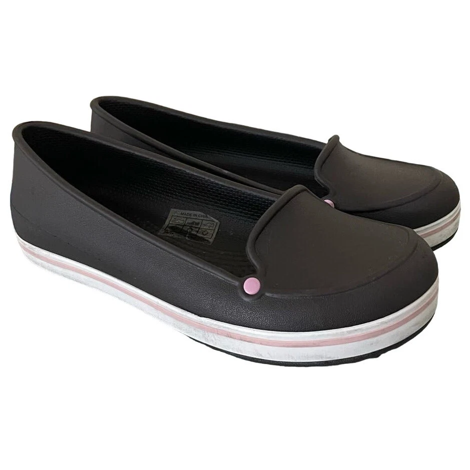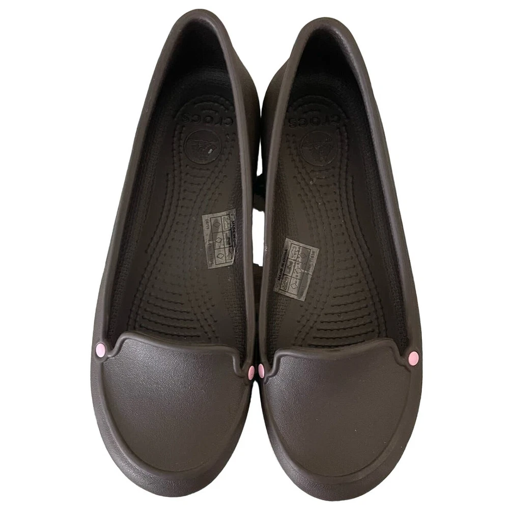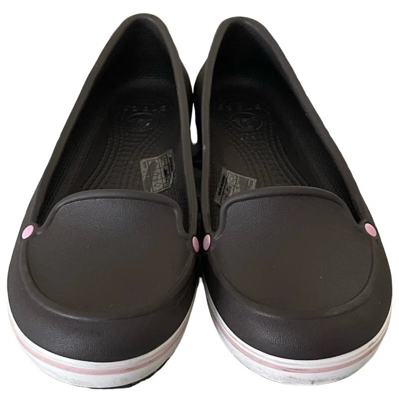 Crocs Loafter Ballet Flat Slip On Spring Summer Uniform Brown Pink - Girl's - 5 lightweight incredibly comfy brown with pink and white detail - color - brown, pink, white - slip on - size 5 Excellent condition. No stains, rips or tears. Pet free and smoke free environment See all pics for any wear/condition tags: women, light weight, comfy, everyday, casual, youth, school, uniform