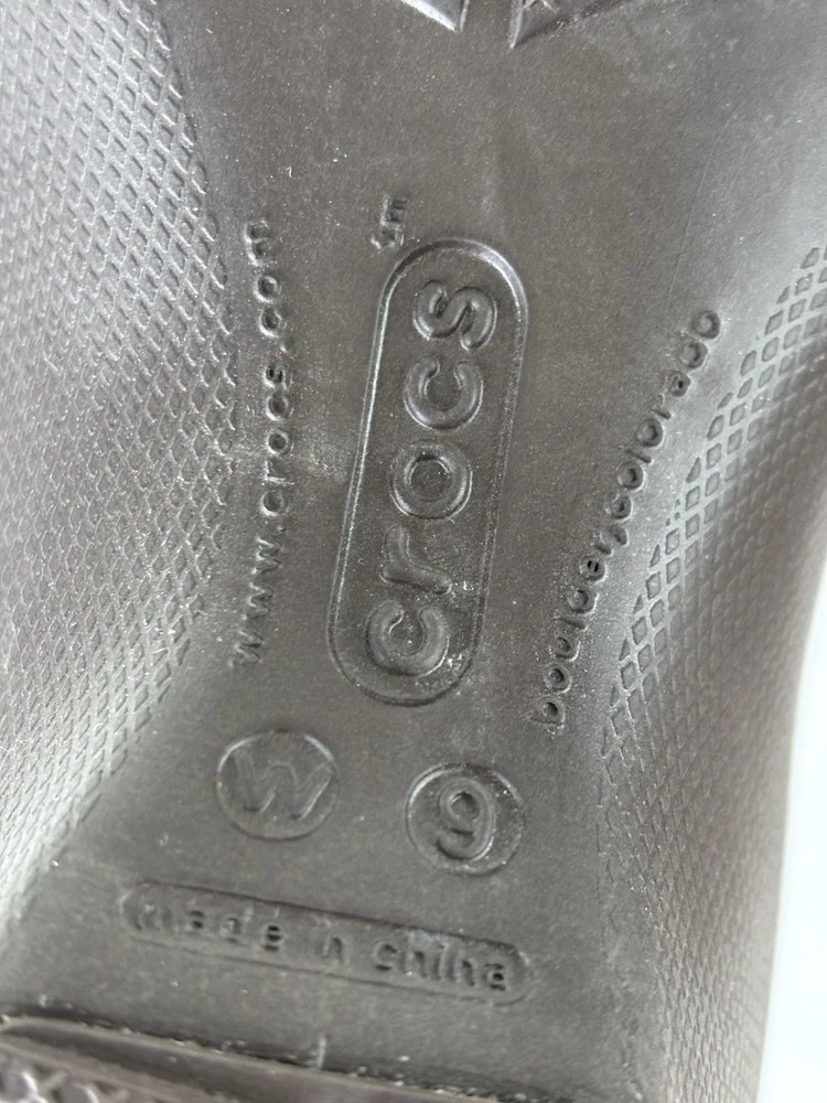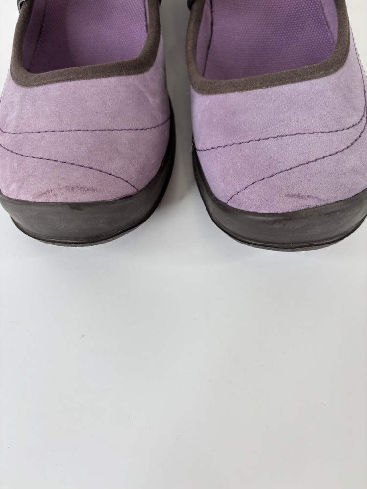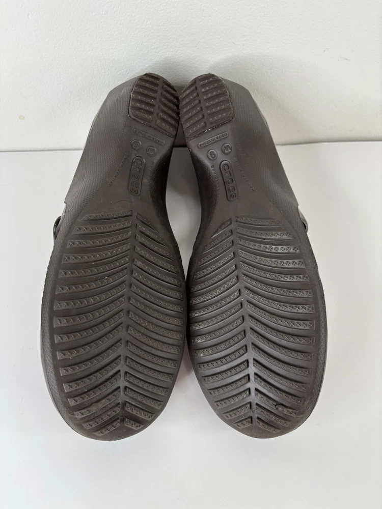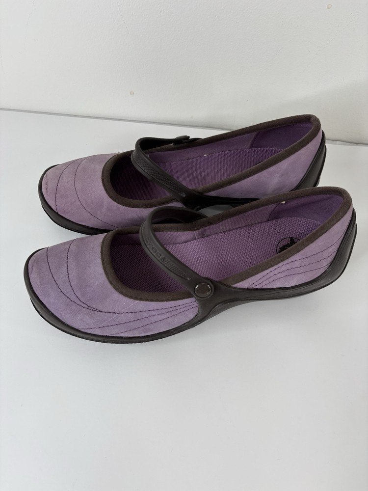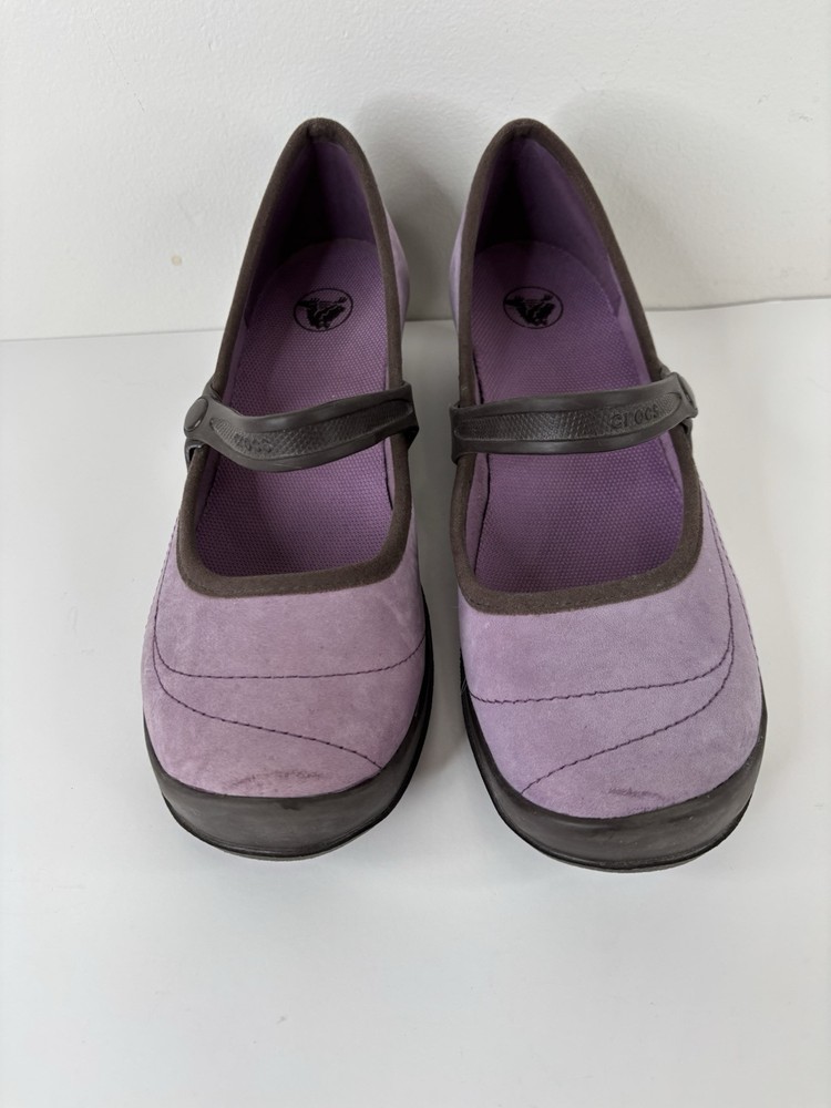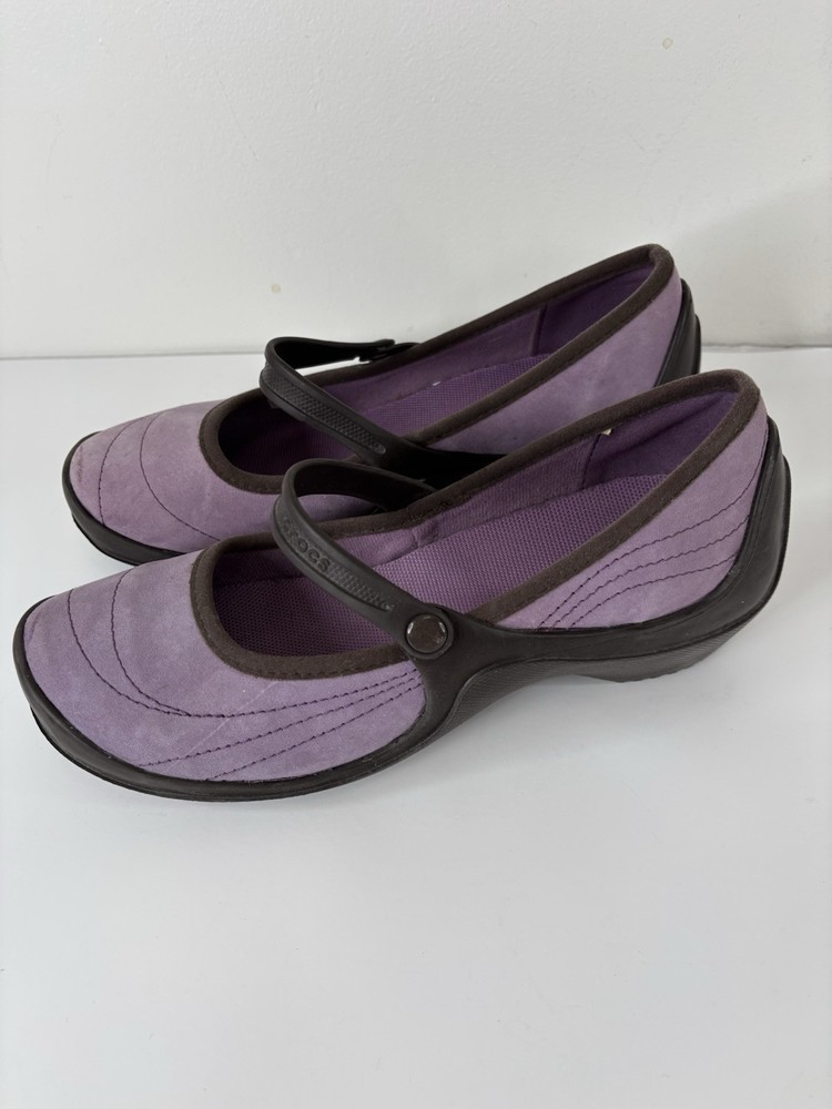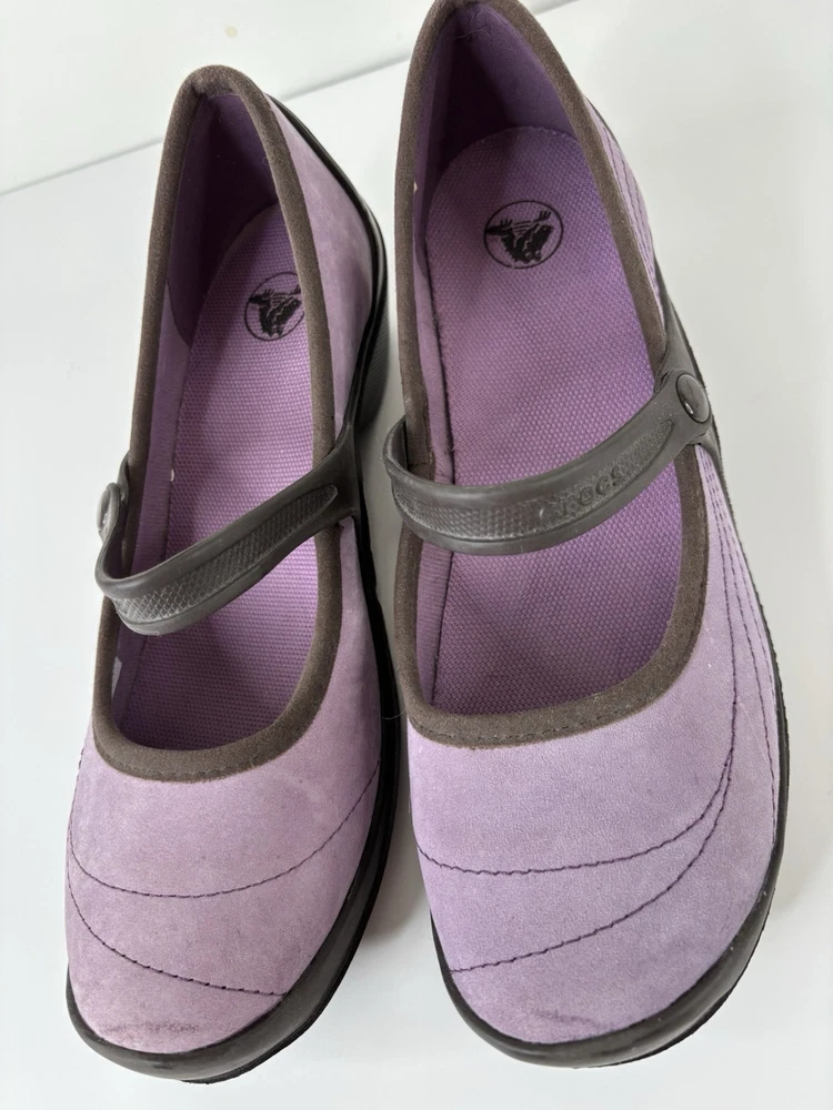 Crocs women’s size 9 Mary Jane purple/brown slip on small scuff on toes, good condition