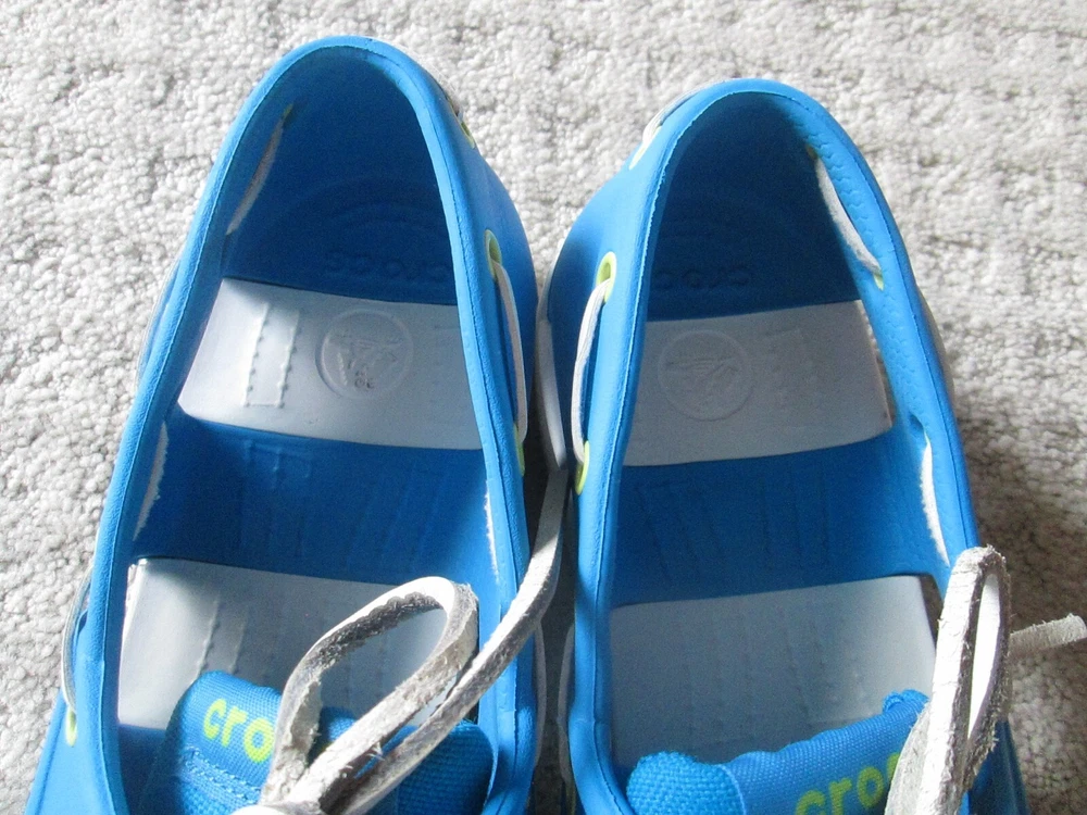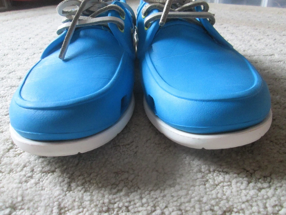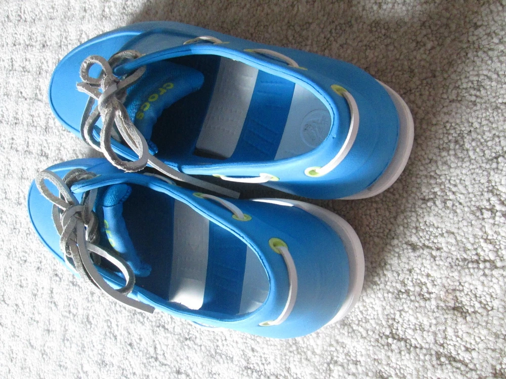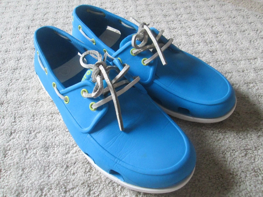 Style:Boat ShoeUpper Material:RubberDepartment:MenBrand:CrocsTheme:Going OutOccasion:CasualPattern:SolidType:CasualCountry/Region of Manufacture:VietnamColor:BlueOutsole Material:RubberModel:ClassicSeason:Fall, Spring, Summer, WinterSeller Notes:“VERY nice barely worn and come as pictured Only MINOR wear/ soiling”Features:Breathable, ComfortClosure:Lace UpToe Shape:Round ToeUS Shoe Size:9Accents:Logo