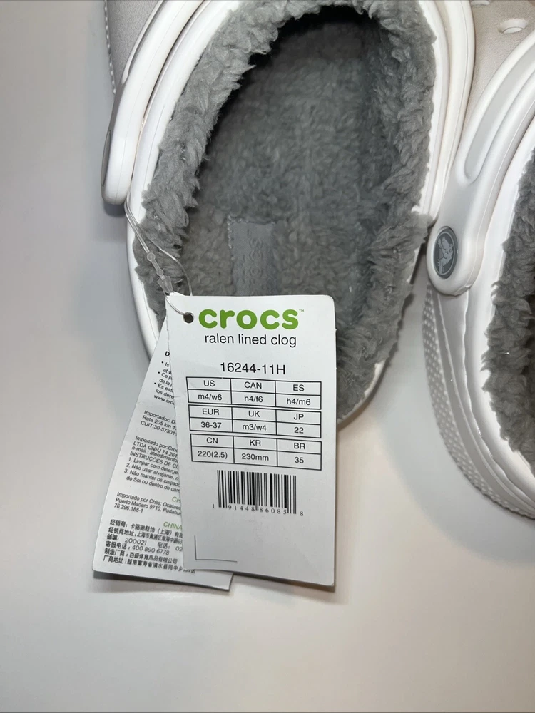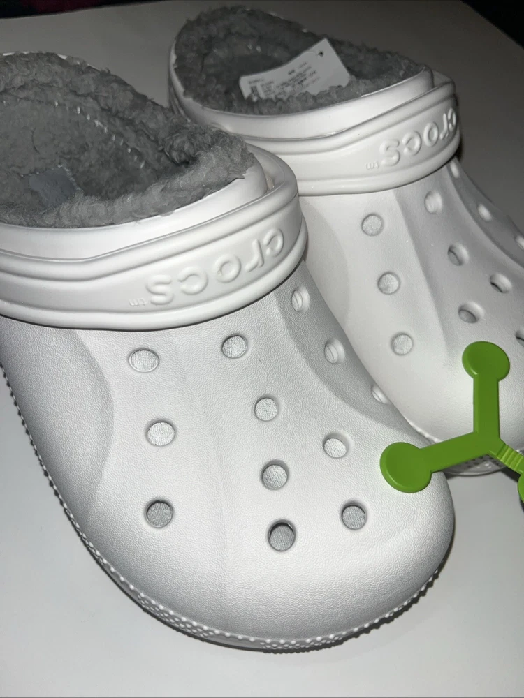 Elevate your comfort with the Crocs Ralen Lined Clog, a perfect blend of cozy and casual for both men and women. These size 4 unisex clogs boast a plush faux fur insole, ensuring your feet stay warm and cozy in any setting, from a casual stroll to a leisurely travel adventure. The durable rubber upper and outsole offer lasting comfort and support, making these clogs a reliable choice for any season. The classic white color pairs effortlessly with any outfit, while the solid pattern and slip-on closure ensure a sleek, no-fuss look. Whether you're lounging at home or on the go, these rare Crocs clogs are the ultimate in comfort and style for the everyday individual.