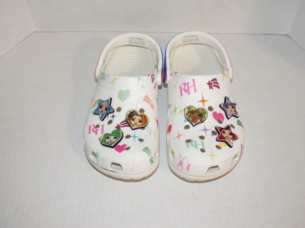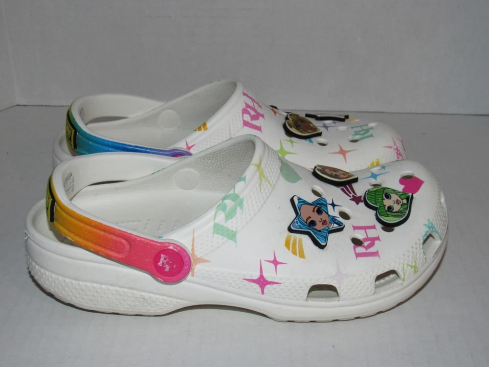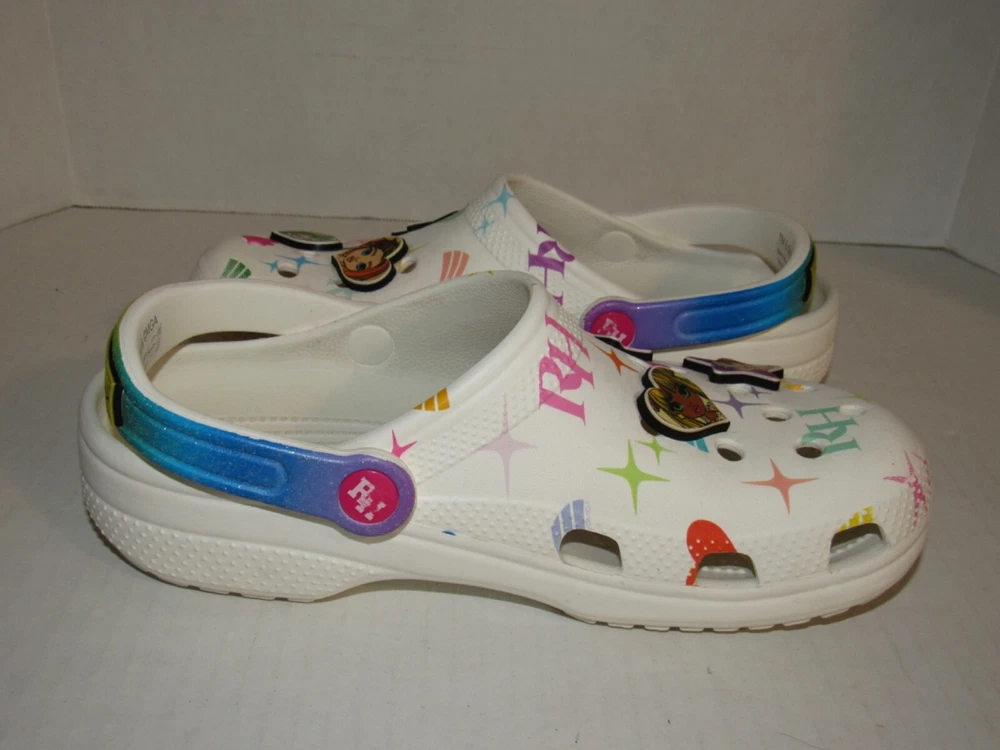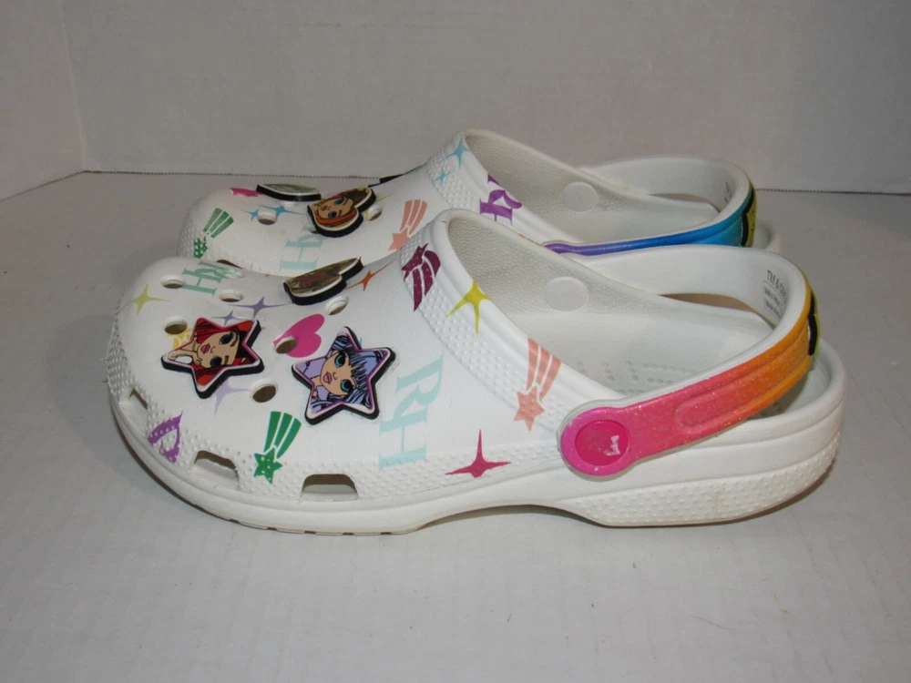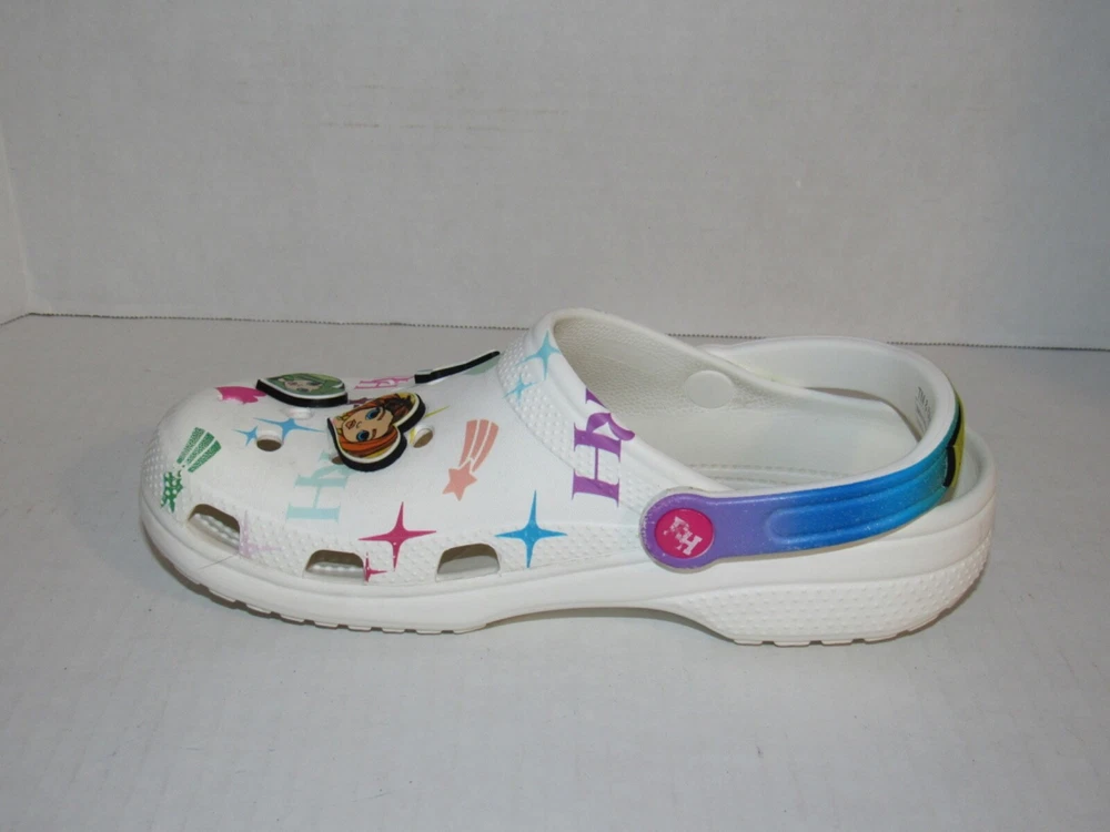Crocs Rainbow High White Classic Clog Shoes 208117-90H. Youth Junior Girls Size 6. In used condition. From smoke free home.