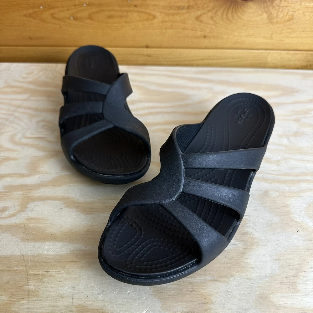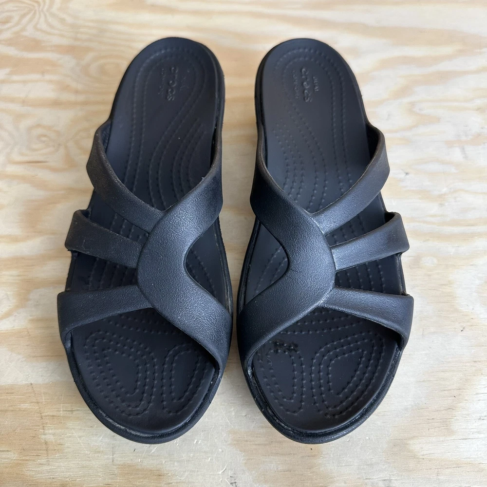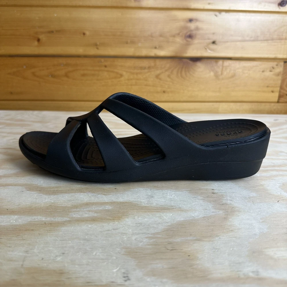 Crocs Sandal Flip Sanrah Wedge Womens Size 8 Black