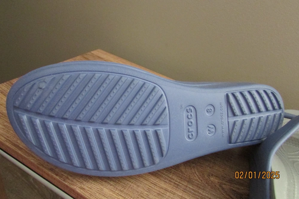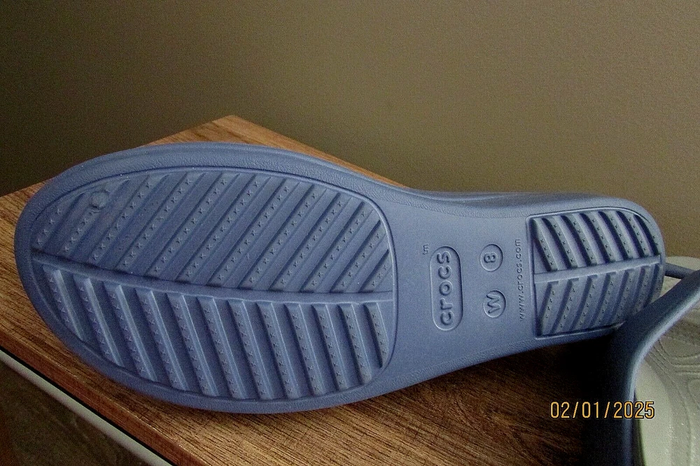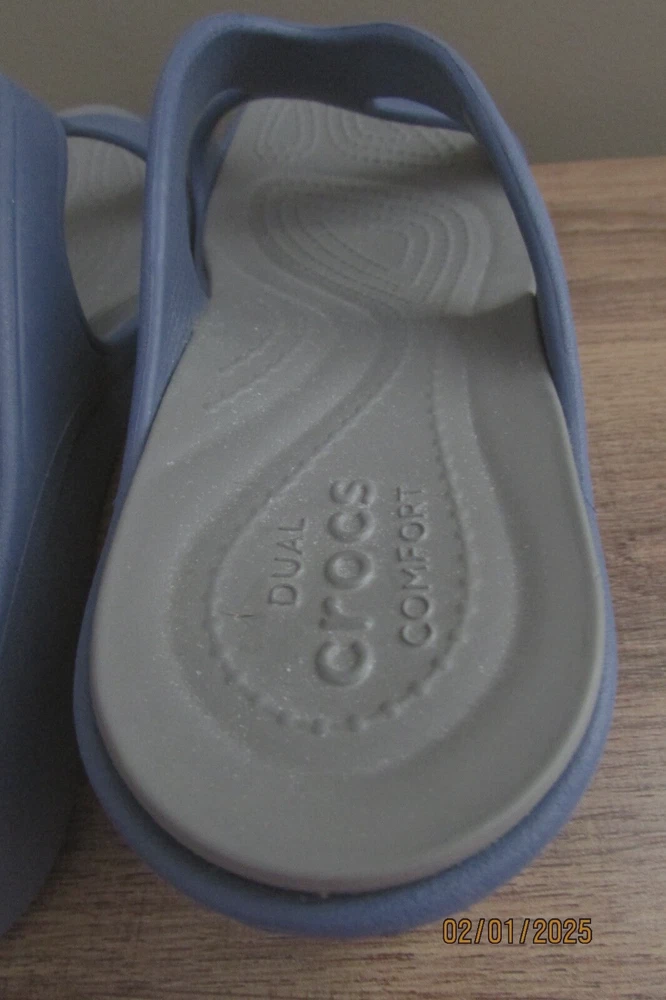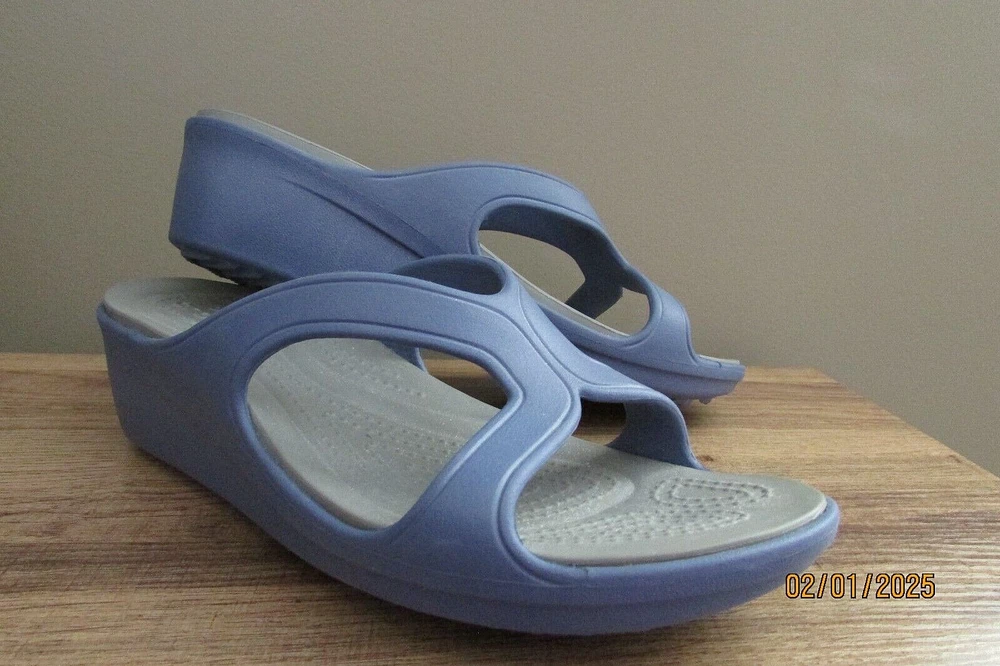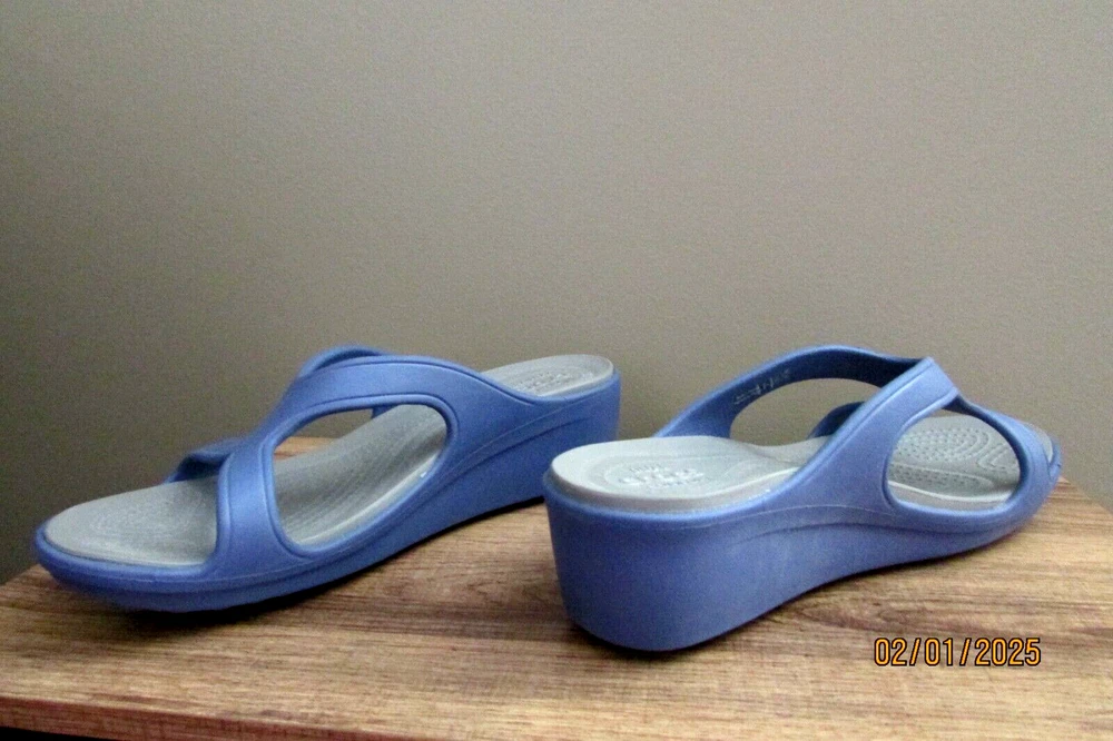 Crocs Sanrah Blue Gray Strappy slide wedge Comfort Sandals size 8 new without box smoke and pet free home