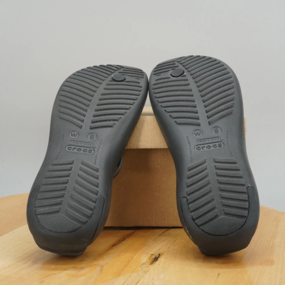 Product Details Item Name: Crocs Sexi Flip Women Size 8 Shoes Black Thong Slingback Strappy Sandals Condition: Pre-owned Size: Womens 8 (Sizes are listed as US equivalents) *Please be sure to look at all pictures before purchasing this item!* Shipping We always ship same day or next! (Unless otherwise stated. Excludes holidays/weekends) Payments Immediate Payment is Required. All payment methods are accepted. If there are any questions in regards to the product, please contact us. All products are 100% Authentic. Pictures are taken to the best of our ability to make sure you clearly know what you are getting. All of our pictures are of the actual product you will be receiving. Thank you for shopping with Salty Soles!