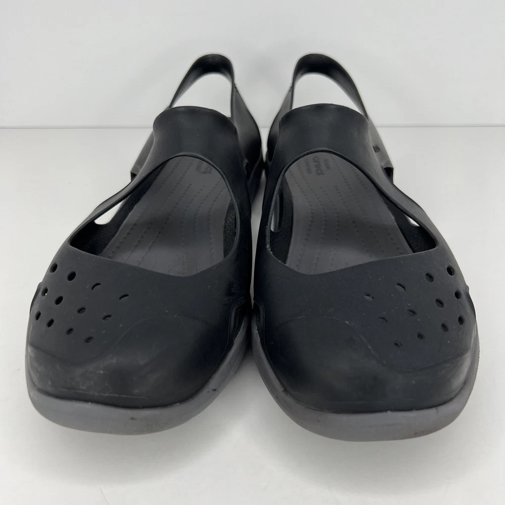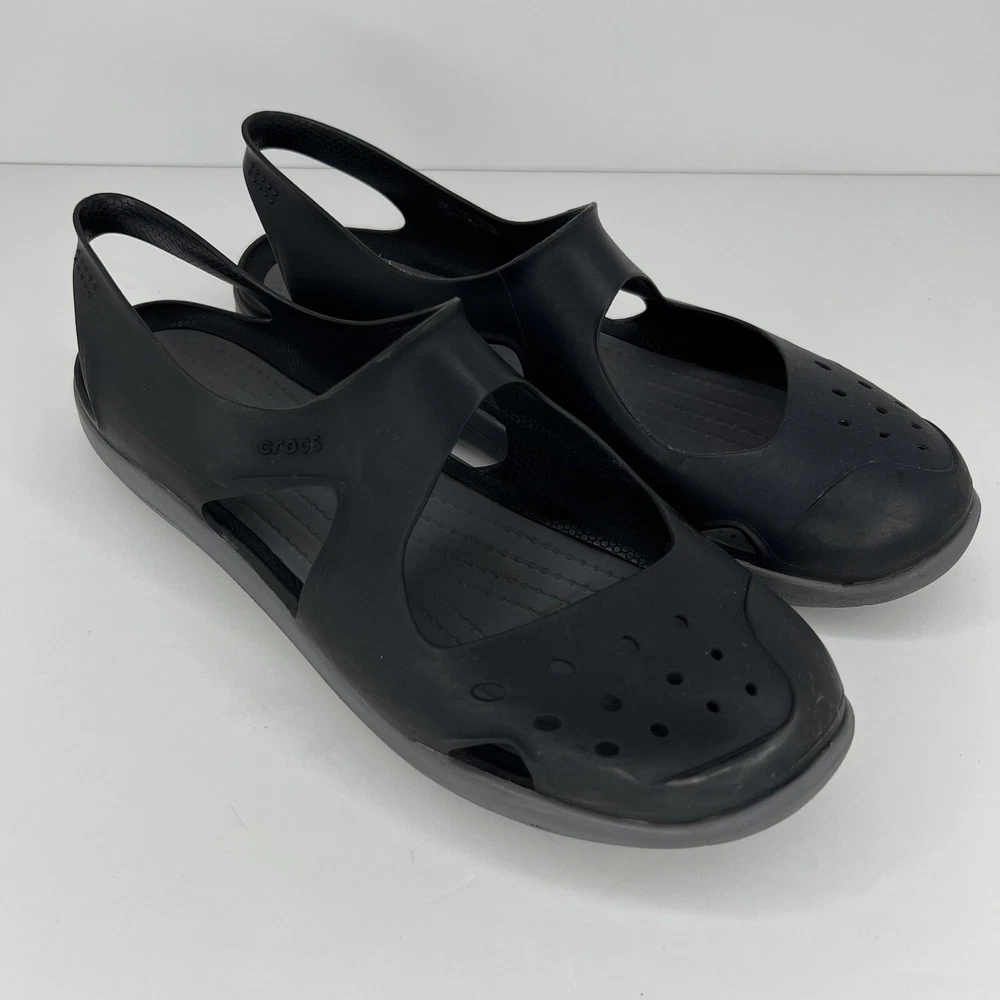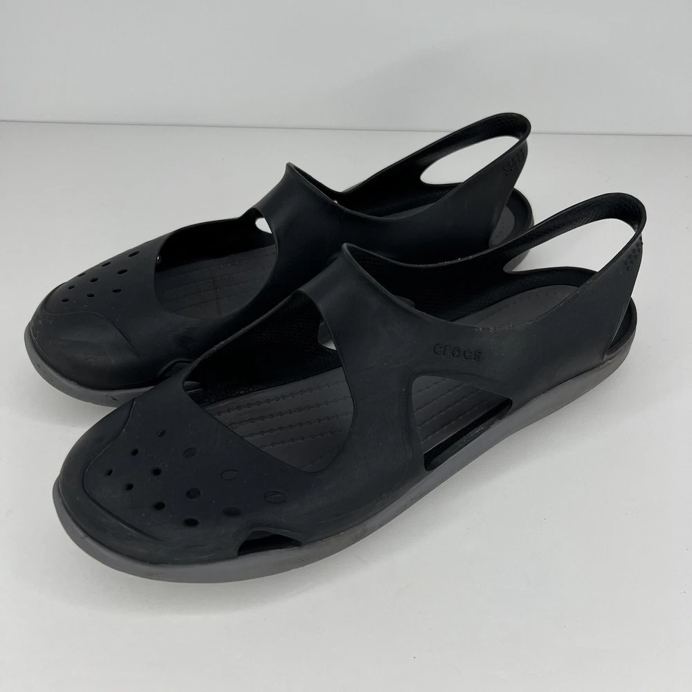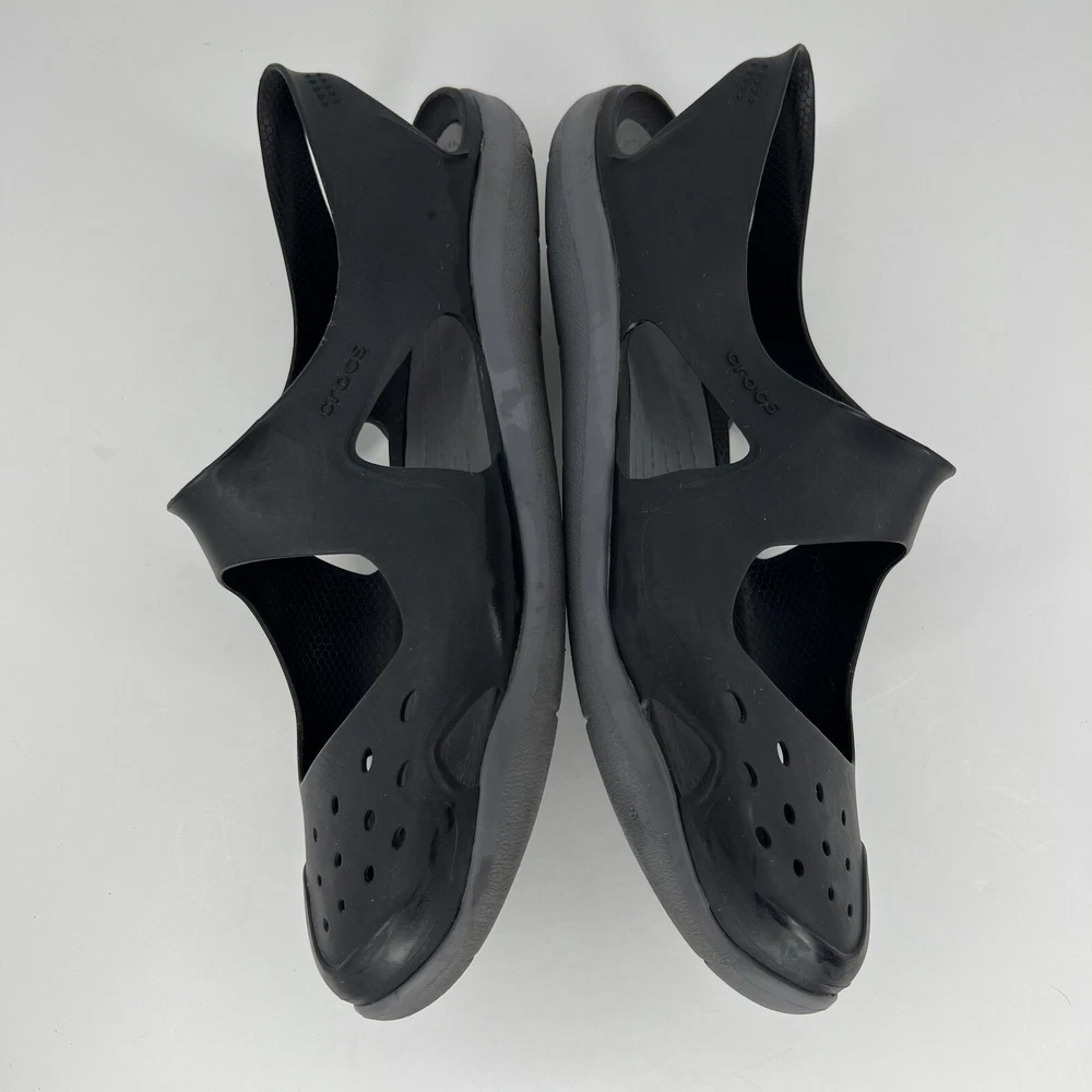 These Crocs Swiftwater Wave sandals are the perfect addition to your shoe collection. Slip them on for any occasion, whether it be travel, activewear, or casual wear. The flat heel height and cushioned insole make them comfortable for all-day wear, while the breathable and waterproof features ensure your feet stay cool and dry. These sandals come in black with a solid pattern and feature the Crocs logo as an accent. The rubber outsole and synthetic upper and lining materials make them durable and easy to clean. The Swiftwater Wave model is a classic favorite and perfect for any outdoor or beach-themed event. 100% CUSTOMER SATISFACTION IS OUR GOAL! Our items are always carefully examined for condition, measured if necessary, and photographed in a climate controlled and smoke-free environment. We make every attempt to accurately describe and clearly picture the items we have for sale. Please, ALWAYS view all of the photos. We value your business and our goal is your complete satisfaction. FAST SHIPPING All items are packaged with care and shipped out the same or next business day via USPS, FEDEX, or UPS with tracking numbers so you are always informed. RETURNS We offer a 30-day return policy. All items must be unused and unopened in the condition in which they were received, with original packaging, and all accessories included for return. REVIEWS - CUSTOMER SATISFACTION - COMMUNICATION We aim to make you happy. After you receive your shipment, please leave a positive review . If you have concerns or questions about your order, please contact us so we can resolve the issue. We will do our best to make you satisfied. THANK YOU FOR YOUR BUSINESS!