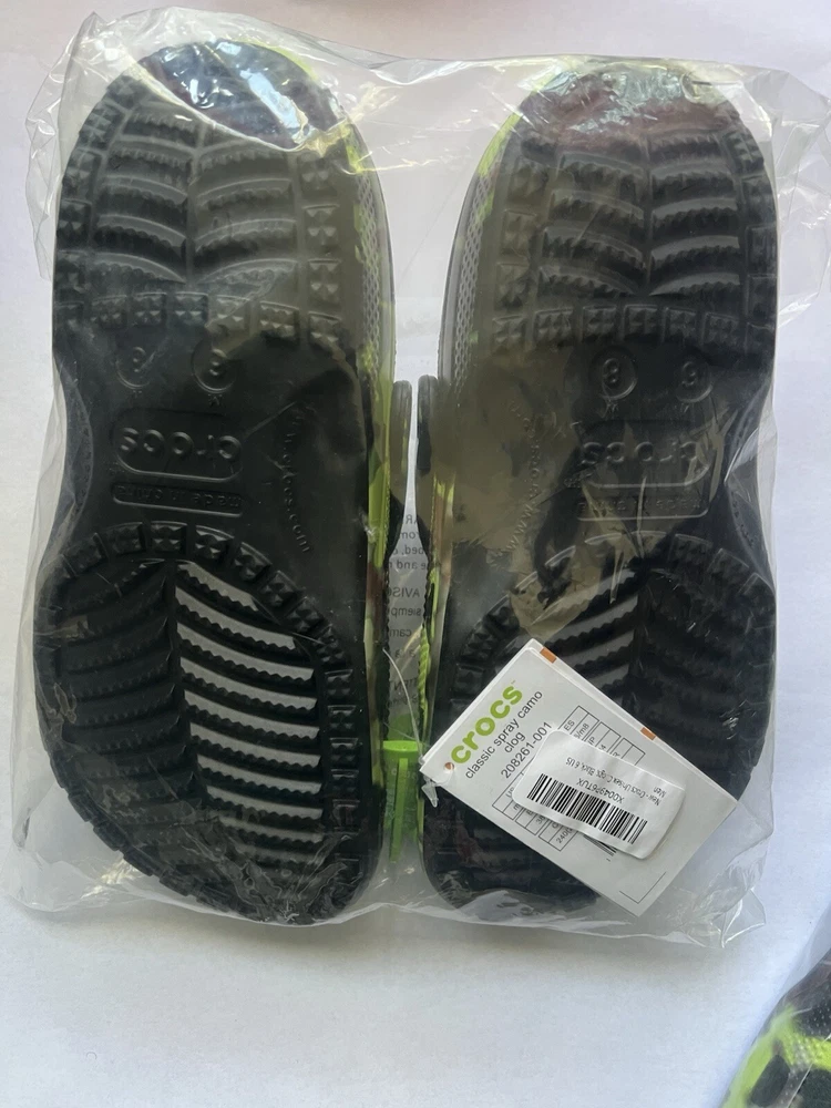 Crocs Unisex Classic Camo Clogs, Black, Size M6-W8.