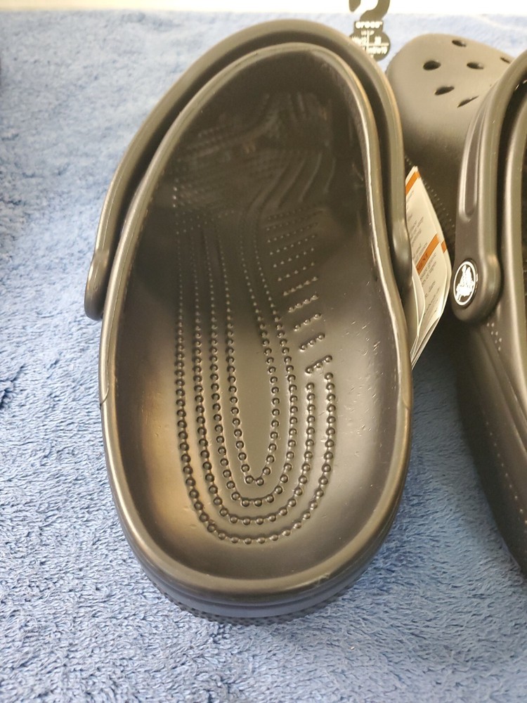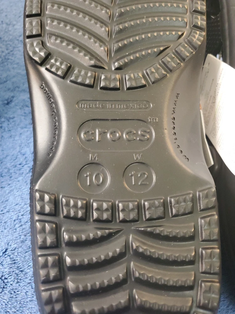 Step out in style with these classic black Crocs clogs. The perfect choice for a versatile and comfortable shoe, these sandals are made of durable rubber and are suitable for men and women alike. With a US shoe size of 10, these Crocs are a great addition to any wardrobe. The unisex Crocs Classic Clogs feature a slip-on design that is easy to wear and remove. The outsole is also made of rubber, providing excellent grip and traction. The Crocs have a simple and timeless design that is suitable for any occasion. WILL SHIP IN A STURDY BOX. WE WILL COMBINE SHIPPING ON MULTIPLE ITEMS IF POSSIBLE. PLEASE CHECK OUT OUR OTHER ITEMS. THANKS FOR LOOKING.