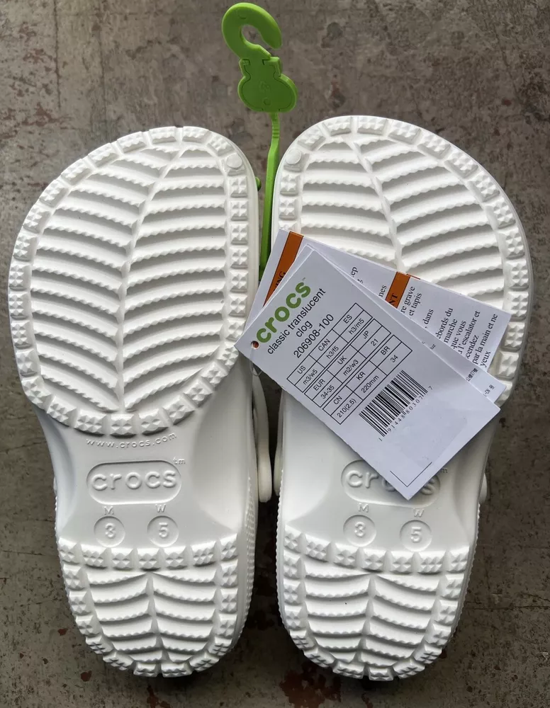 Crocs Unisex Men's and Women's Classic Translucent Clog, White, Size M3/W5