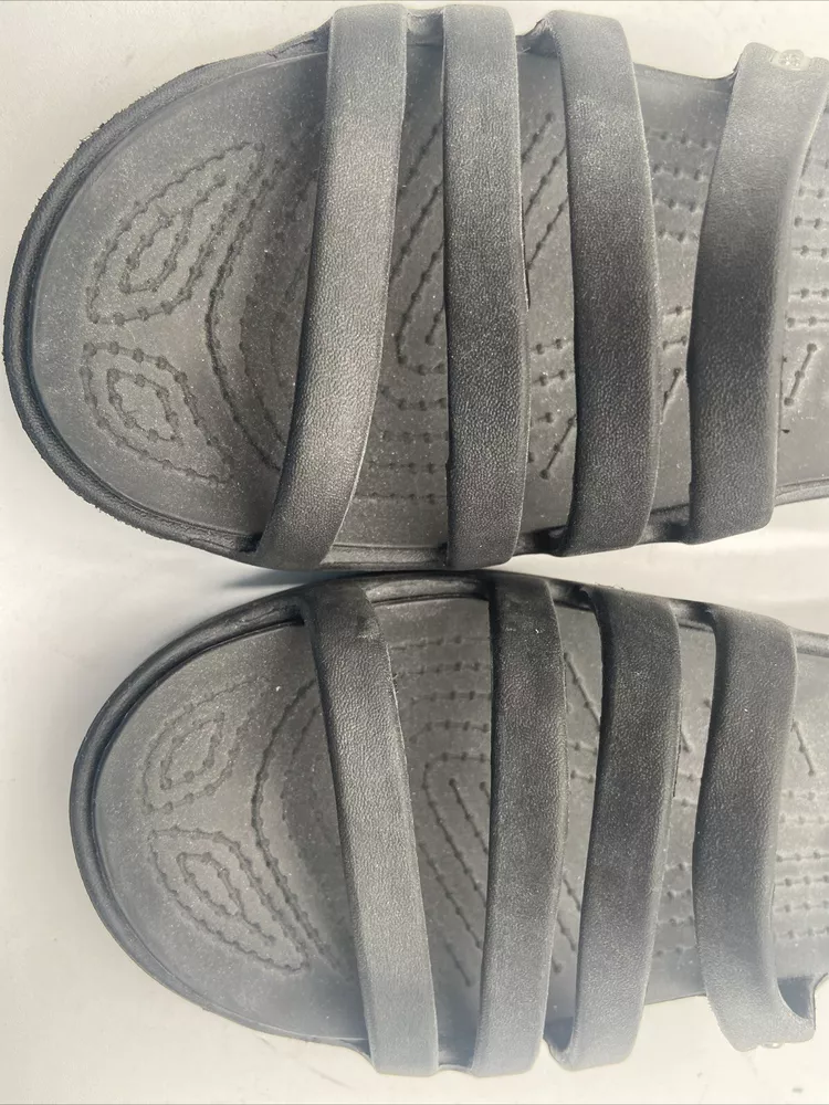 Preowned excellent condition little sign everywhere women’s sandal size 7 color black material unspecified