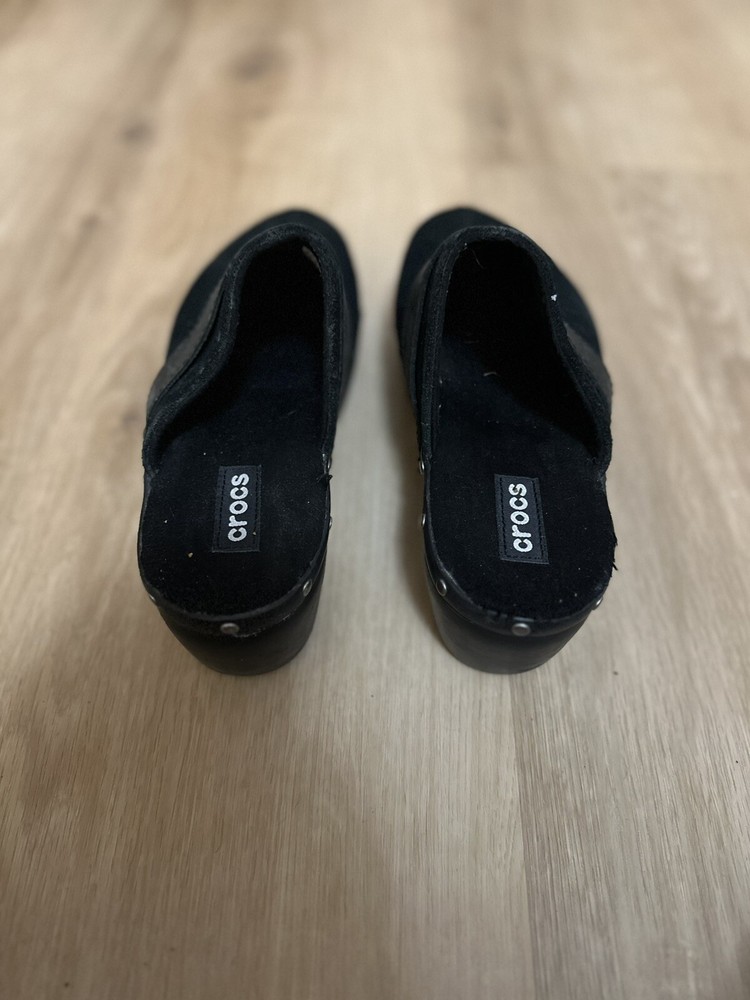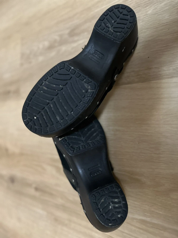 Elevate your comfort with these Crocs Women’s Cobbler Studded Comfort Clogs in size 9. The black color and solid pattern make them perfect for any occasion, whether it's for travel, casual workwear or school. The round toe shape and slip-on closure provide a comfortable fit, while the mid-height wedge heel adds a touch of style. The clogs are made of a blended fabric with studded accents and a low-top shoe shaft style. The faux leather insole material and synthetic outsole make them durable and comfortable. The clogs are perfect for all seasons, including winter, summer, fall, and spring.