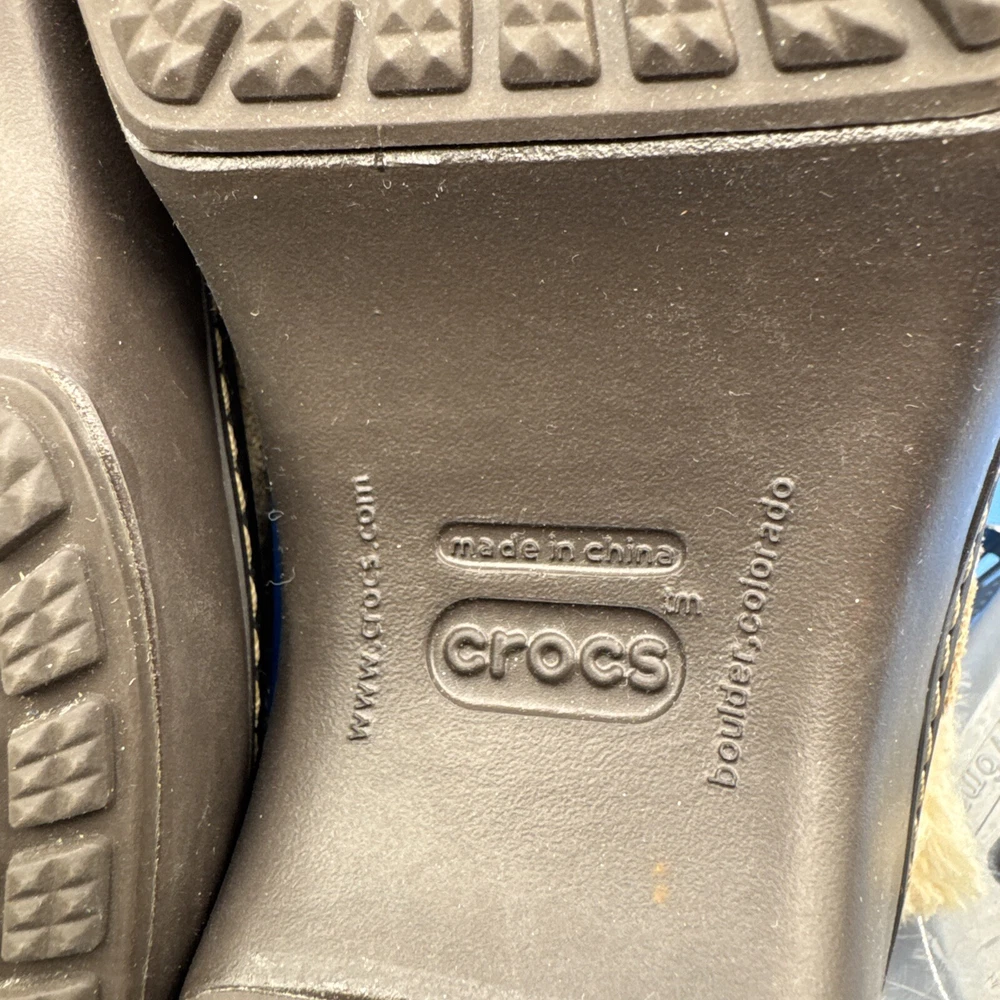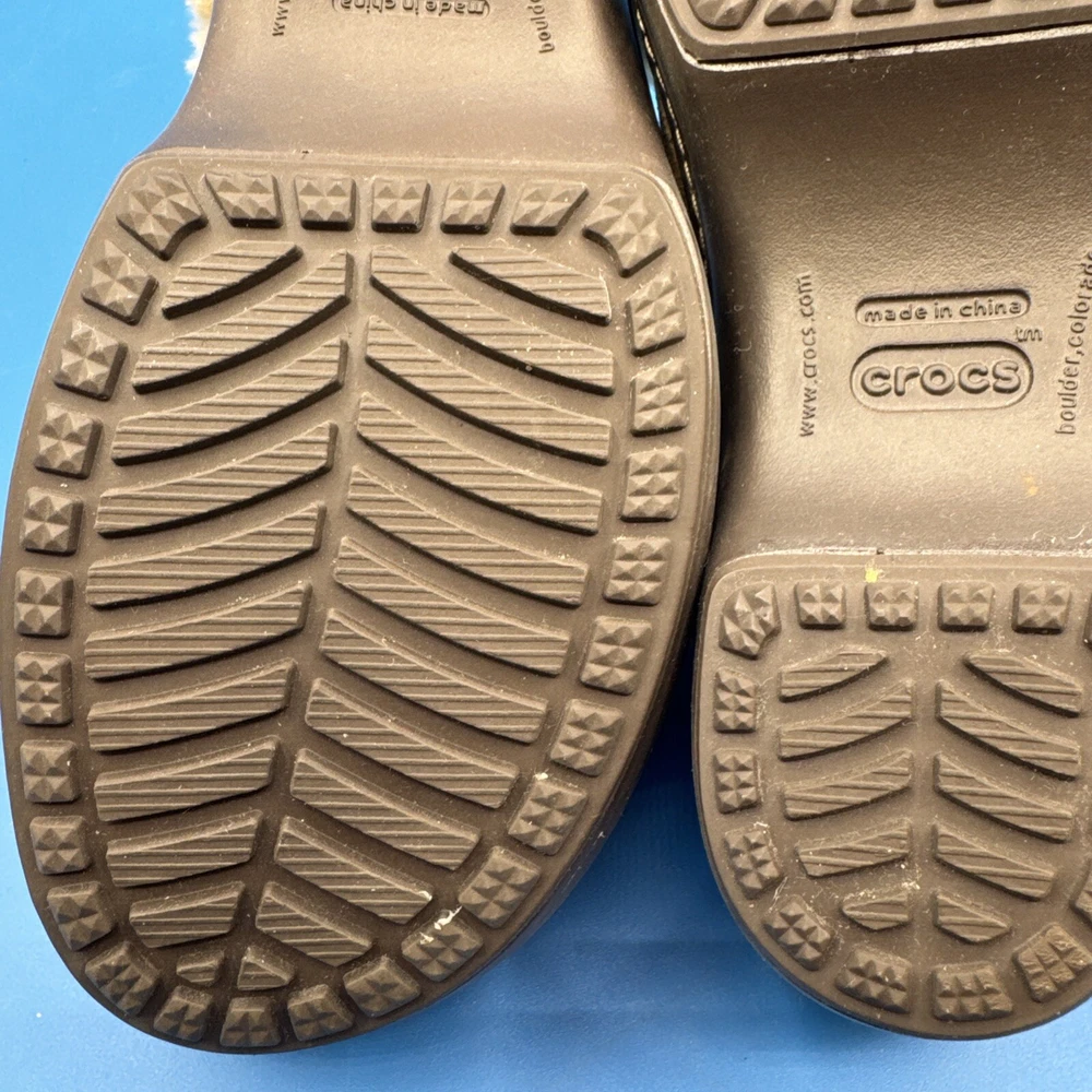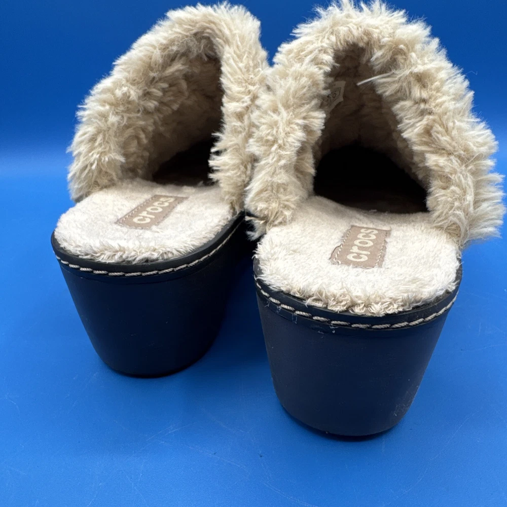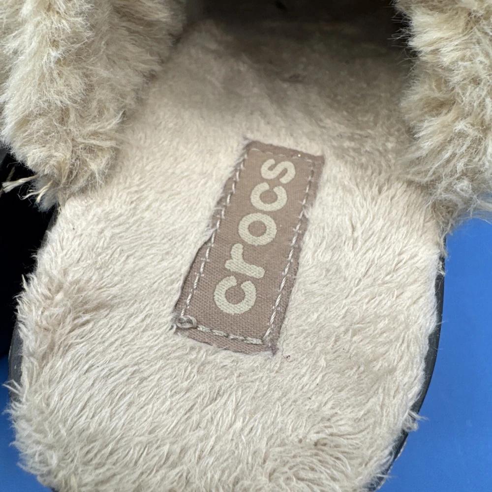These Crocs Women's mule clogs are designed in brown suede with a faux fur lining for added comfort. They are slip-on style shoes with a faux suede outsole, perfect for casual wear. The size is women's 7, making them suitable for everyday use. Pre owned. Hardly used. No original box. Excellent condition. Size 7W. Please check the pictures carefully as part of the description. Feel free to ask questions if you need more information before you buy it. Thank you for your interest B-11