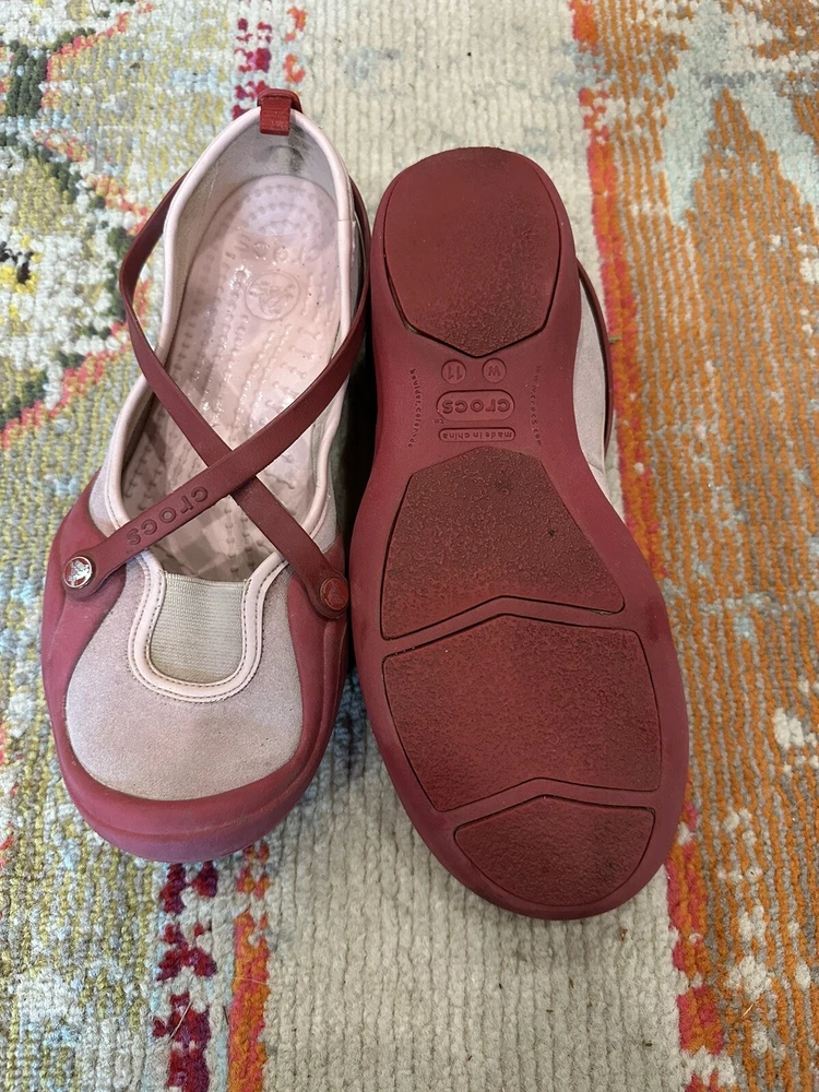 Crocs Women's Casual Shoes. Size 11. Red/Pink.. Condition is Pre-owned. Shipped with USPS Ground Advantage.