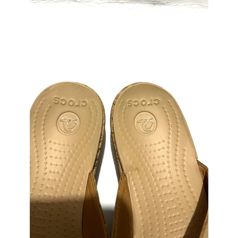 Crocs sandals slide on wedges comfort shoes beige summer women's 9 it has a couple stons missing in the flower. See the last pic