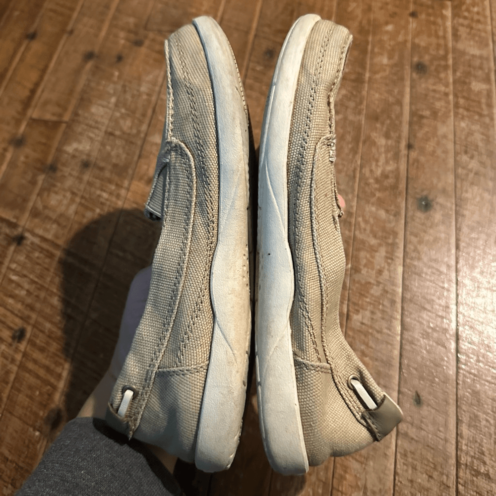 Crocs rubber, arch support, ortho, washable, tan/cream, slip on, loafers shoes. Minor wear, overall in good used condition. From a pet and smoke free house. Happy to bundle!
