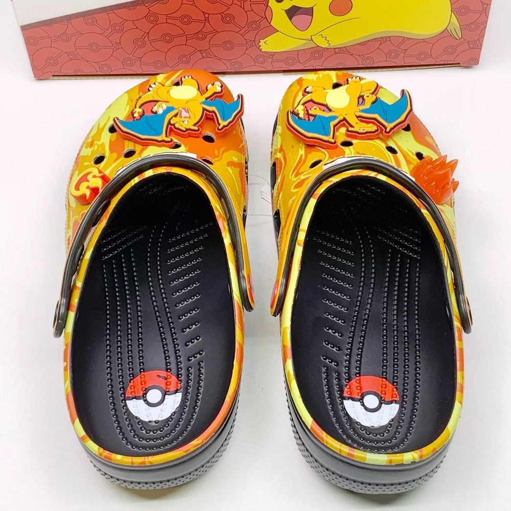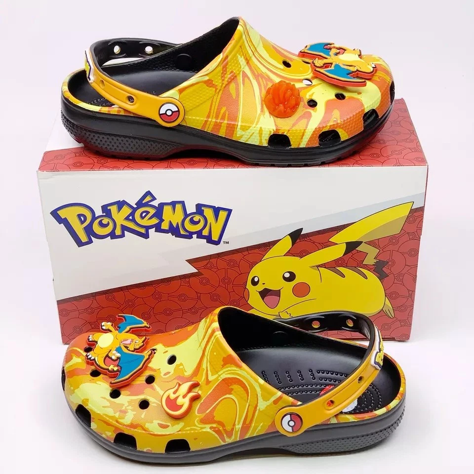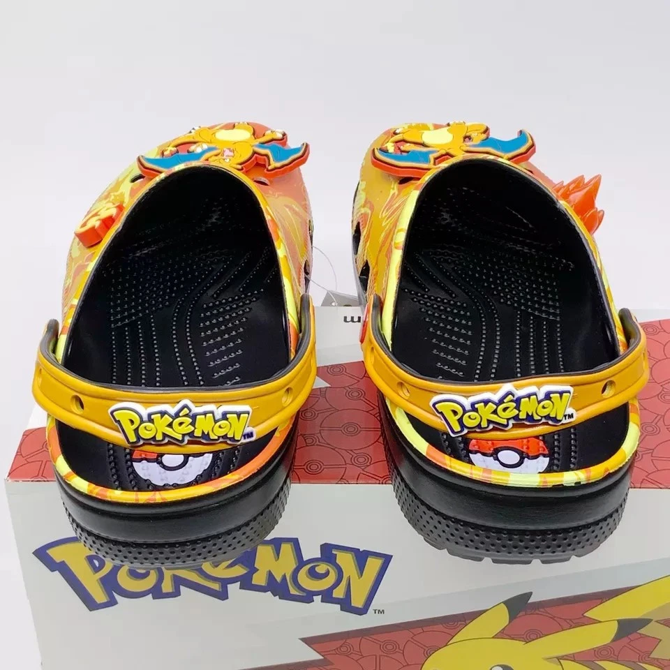 Crocs x Pokemon 'Charizard' Classic Clog sandals in a vibrant multicolor design. These slip-on sandals feature a synthetic upper material with a synthetic outsole, making them both comfortable and durable. The Crocs Classic product line ensures quality and style, perfect for any Pokemon fan. Available in various US shoe sizes for Unisex Adults, these sandals are a must-have for any collector or fan of the iconic Pokemon franchise. Don't miss out on adding these unique and eye-catching sandals to your collection today!