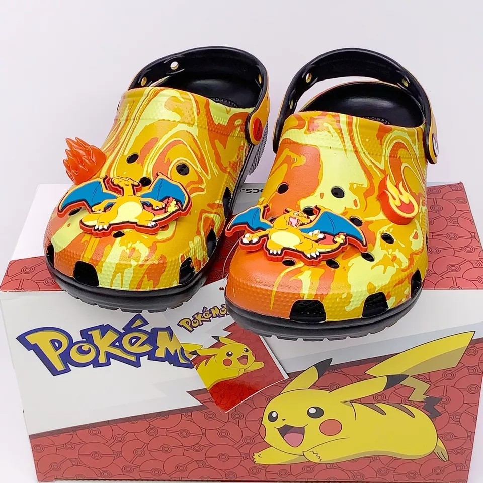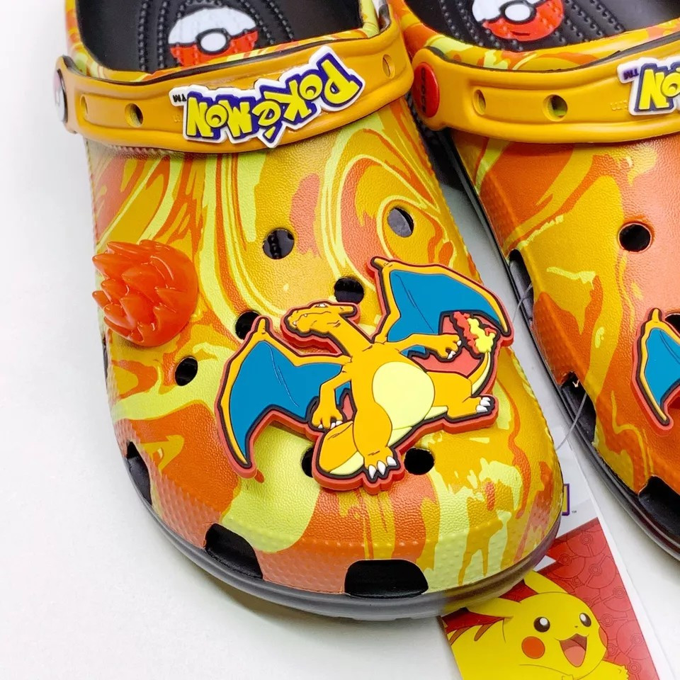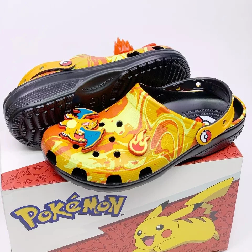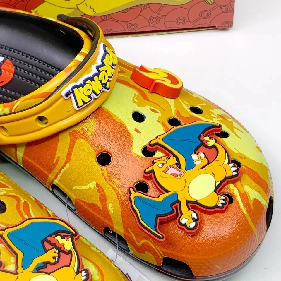 Crocs x Pokemon 'Charizard' Classic Clog sandals in a vibrant multicolor design. These slip-on sandals feature a synthetic upper material with a synthetic outsole, making them both comfortable and durable. The Crocs Classic product line ensures quality and style, perfect for any Pokemon fan. Available in various US shoe sizes for Unisex Adults, these sandals are a must-have for any collector or fan of the iconic Pokemon franchise. Don't miss out on adding these unique and eye-catching sandals to your collection today!