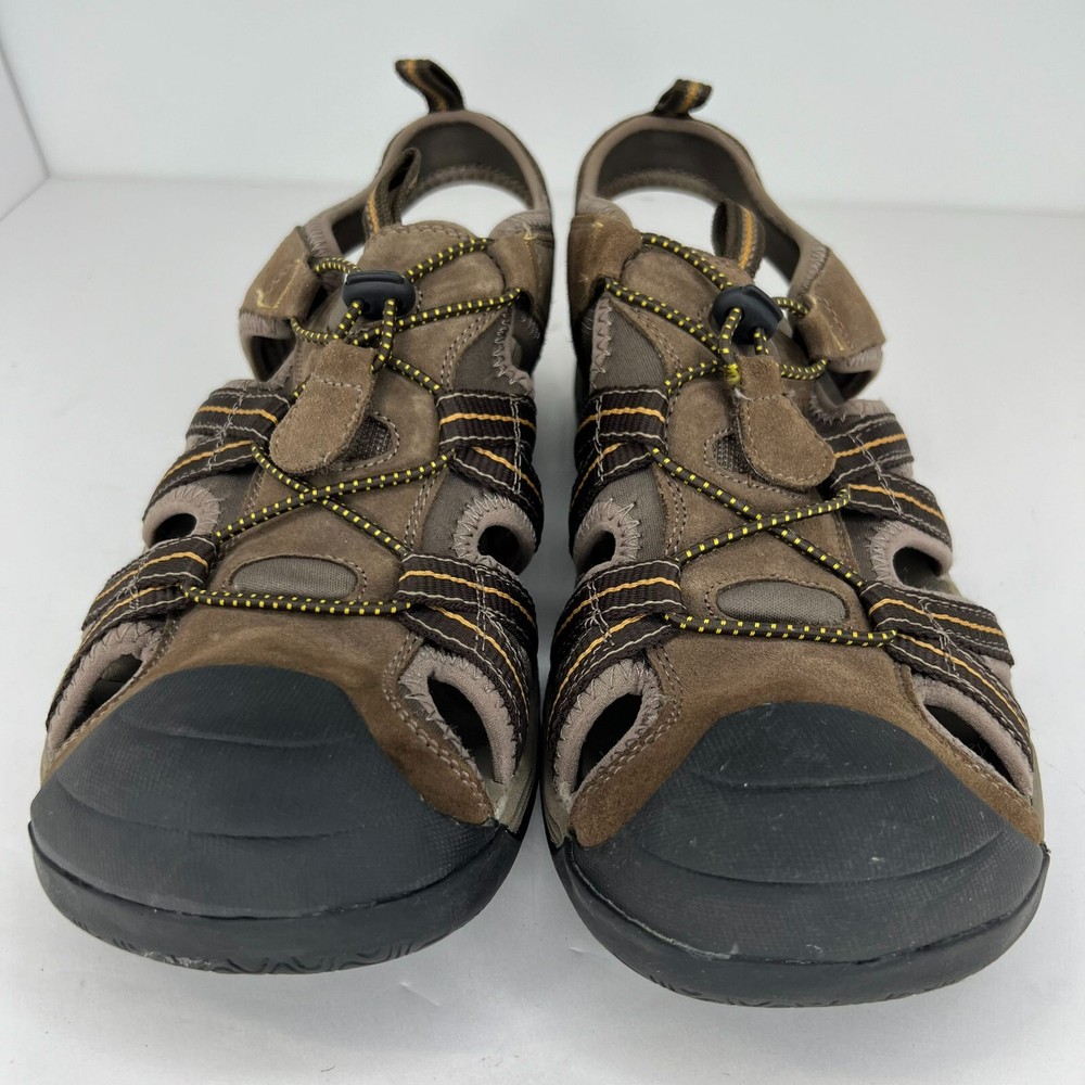 Get ready for your next outdoor adventure with these Croft & Barrow slip-on sandals. Designed for men, these sandals feature a solid pattern and a brown color that will match any casual or travel outfit. The leather upper and outsole material provide durability and comfort, making them perfect for summer, fall, or spring. These sandals have a slip-on closure, making them easy to wear and take off. With a UK shoe size of 11.5 and a US shoe size of 12, they are a perfect fit for any man looking for a comfortable and stylish pair of sandals. Whether you're going on a hike or just running errands around town, these Croft & Barrow sandals are the perfect addition to your shoe collection. 100% CUSTOMER SATISFACTION IS OUR GOAL! Our items are always carefully examined for condition, measured if necessary, and photographed in a climate controlled and smoke-free environment. We make every attempt to accurately describe and clearly picture the items we have for sale. Please, ALWAYS view all of the photos. We value your business and our goal is your complete satisfaction. FAST SHIPPING All items are packaged with care and shipped out the same or next business day via USPS, FEDEX, or UPS with tracking numbers so you are always informed. RETURNS We offer a 30-day return policy. All items must be unused and unopened in the condition in which they were received, with original packaging, and all accessories included for return. REVIEWS - CUSTOMER SATISFACTION - COMMUNICATION We aim to make you happy. After you receive your shipment, please leave a positive review . If you have concerns or questions about your order, please contact us so we can resolve the issue. We will do our best to make you satisfied. THANK YOU FOR YOUR BUSINESS!