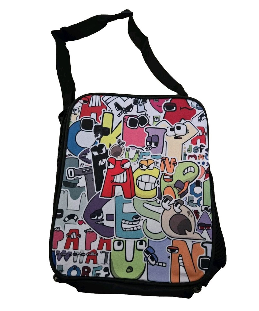 This cross-border cartoon letter's lunch bag is the perfect accessory for any young student. With a colorful multicolor pattern and a unique cartoon letter design, this shoulder bag is both fun and functional. The bag has a zip closure and features straps for easy carrying. Measuring 9 inches in width and 11 inches in height, this unisex kids backpack has plenty of space for all their lunch essentials. The bag is made in China and features the popular cartoon letter characters.