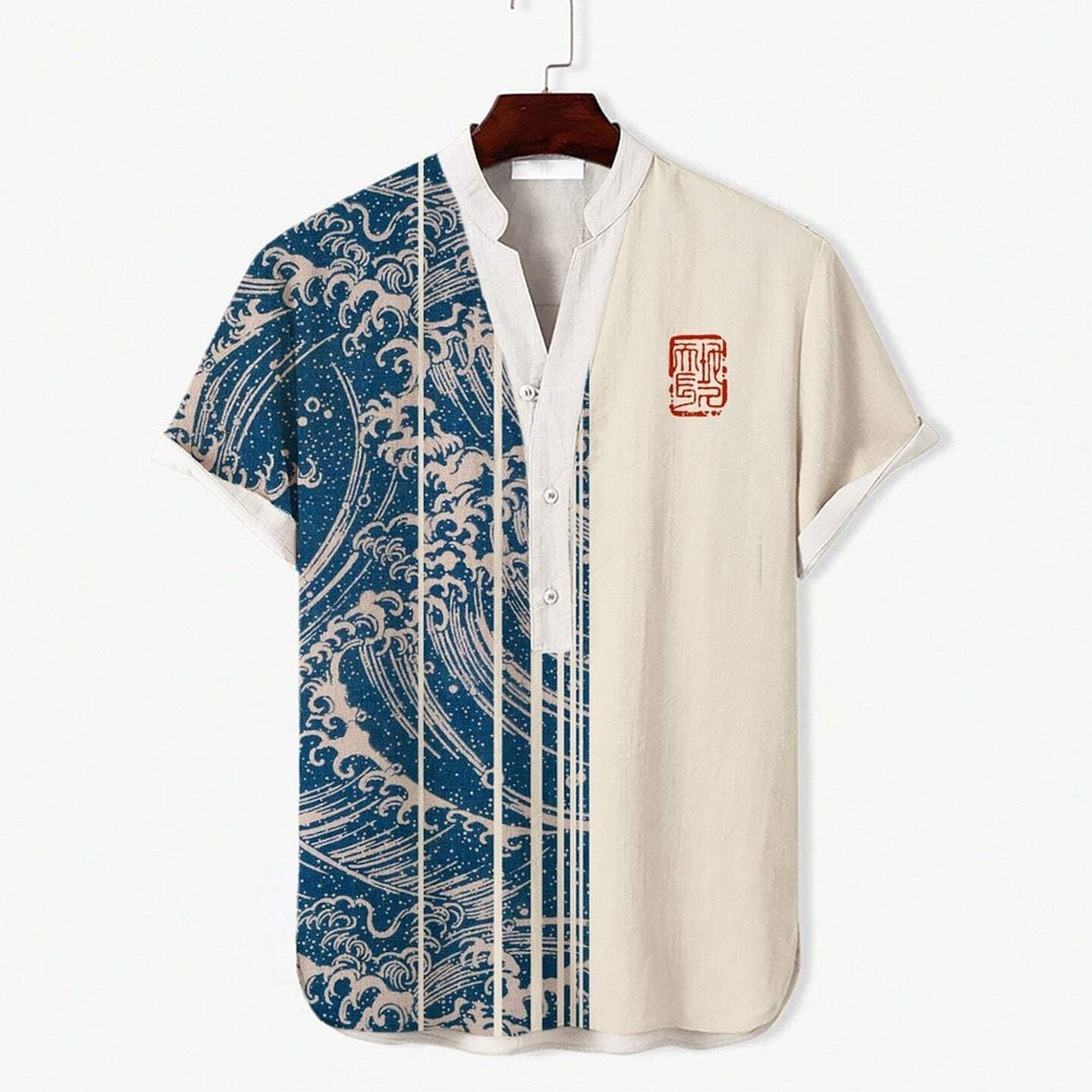This shirt is super stylish and comfortable—perfect for a casual, trendy look! The fabric feels great, and the block graphic print stands out. Sizing runs small, so definitely size up if you’re in between. Love the stand collar and short sleeves for a modern fit. Great for everyday wear! Highly recommend for a fresh, youthful vibe.