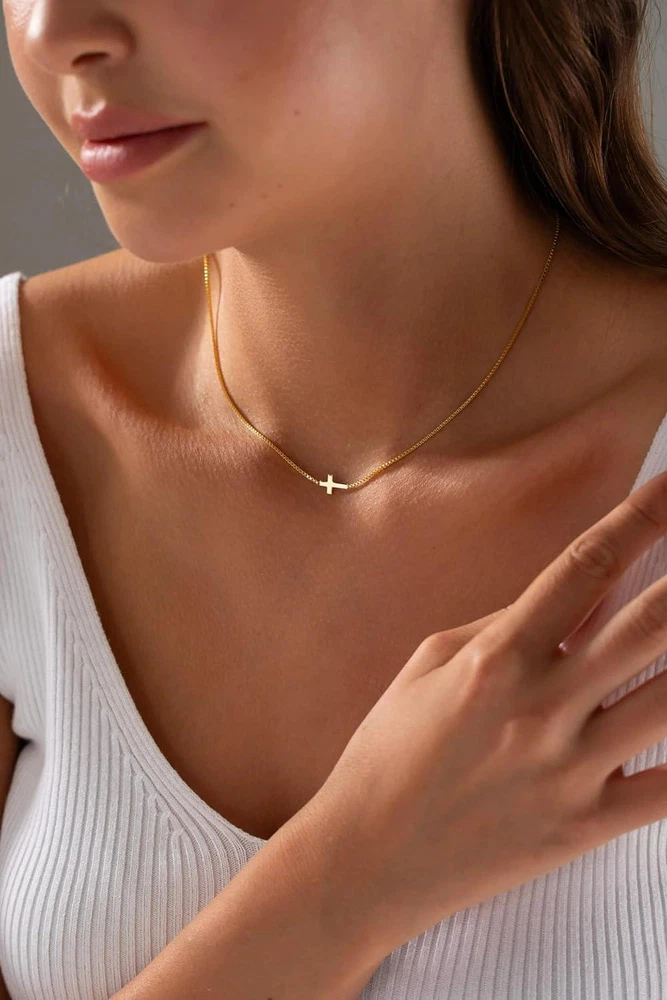 NEW! Trendy Fashion Faith Christian Religious Cross Pendant Necklace Minimalist Dainty Mini Simple Chain! - 14k Gold plated, Nickel-free, Lead-free - Chain Length:15". + 2"extension. - Ideal Gift. THANK YOU!