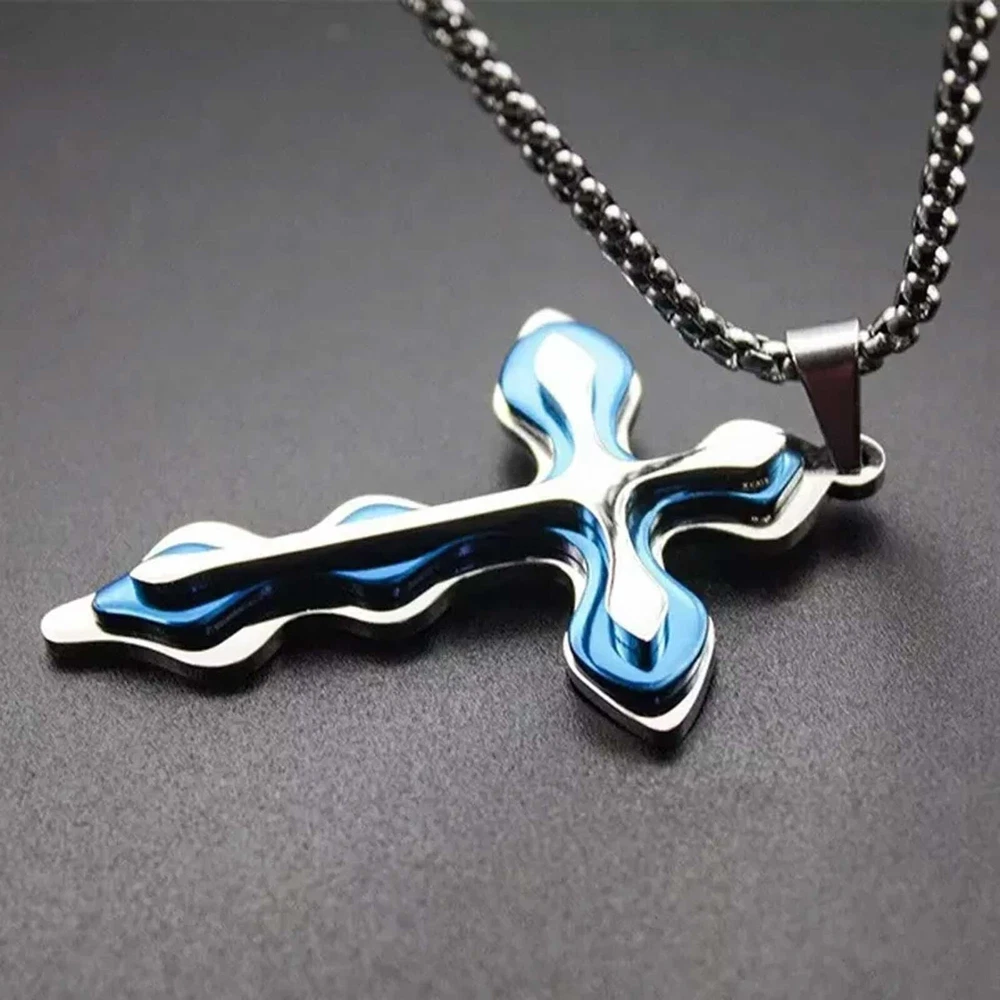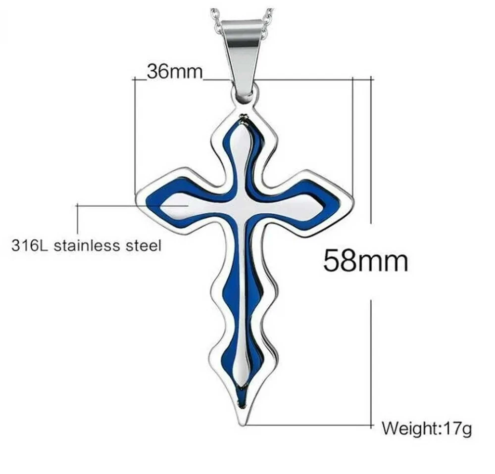 100% brand new and high quality Unique design, more distinctive The product\'s design that is beautiful and unique, especially for you Sturdy and durable Wear this necklace can make you more personalized This is a particular significance cross necklace Style: Pendant Theme: Religious Material: Stainless Steel Size:Length * width/5.5*2.5cm Free Matching Chain Necklace: aprox. 24" inches (50cm) Steel Chain Color:Blue Quantity:1 x necklace