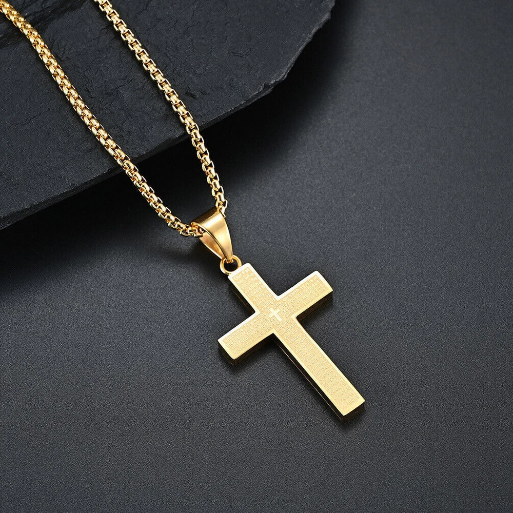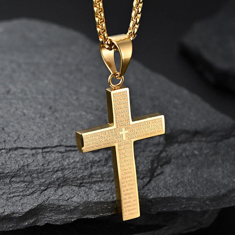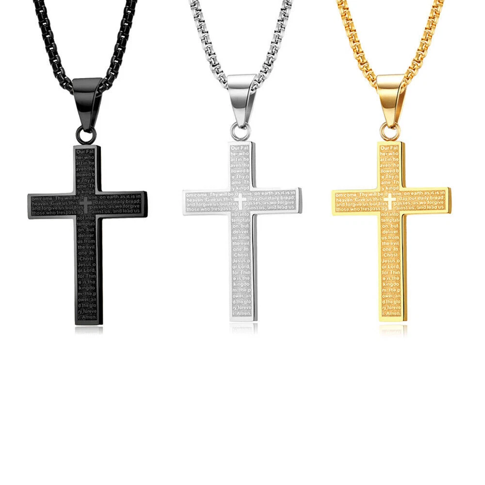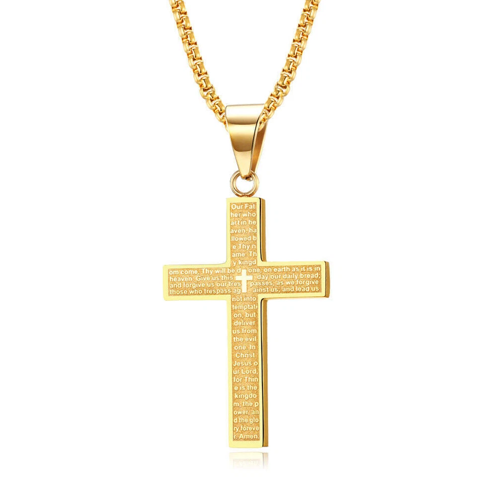 Cross Pendant Necklace for Men Women Stainless Steel Engrave Lord's Prayer Chain