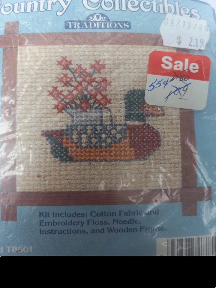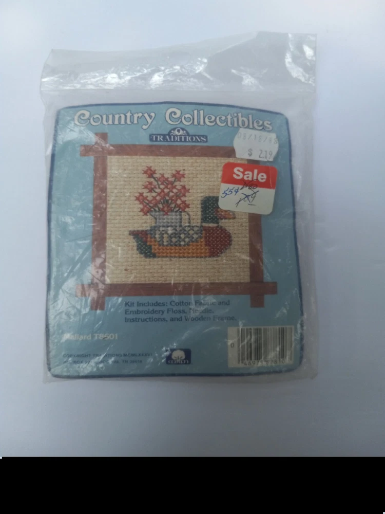 New Old Stock Mallard Duck Cross Stitch Kit With Wooden Frame by Traditions. There are old retail sales stickers on the package. Never opened. E6