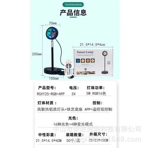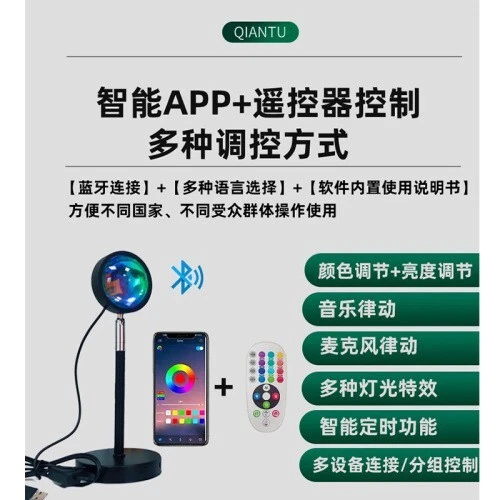 Cross-Border Sunset Light App + Remote Control Rainbow Projection Light Description The Cross-Border Sunset Light App + Remote Control Rainbow Projection Light is a modern and versatile decor accessory that brings stunning sunset and rainbow effects into any space. Controlled via a dedicated app or remote, this lamp allows you to adjust colors, brightness, and projection angles with ease. Its high-quality lens delivers vivid and realistic light patterns, perfect for creating a cozy atmosphere, enhancing photography, or adding a unique touch to your living space. Compact and stylish, it fits seamlessly into bedrooms, living rooms, or studios. A thoughtful gift or a stylish addition for those who love aesthetic and functional lighting. Please message me if you have any questions.