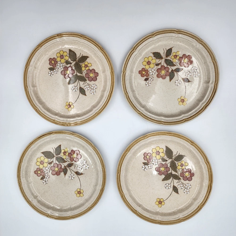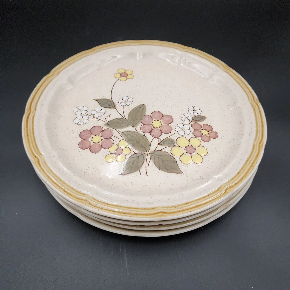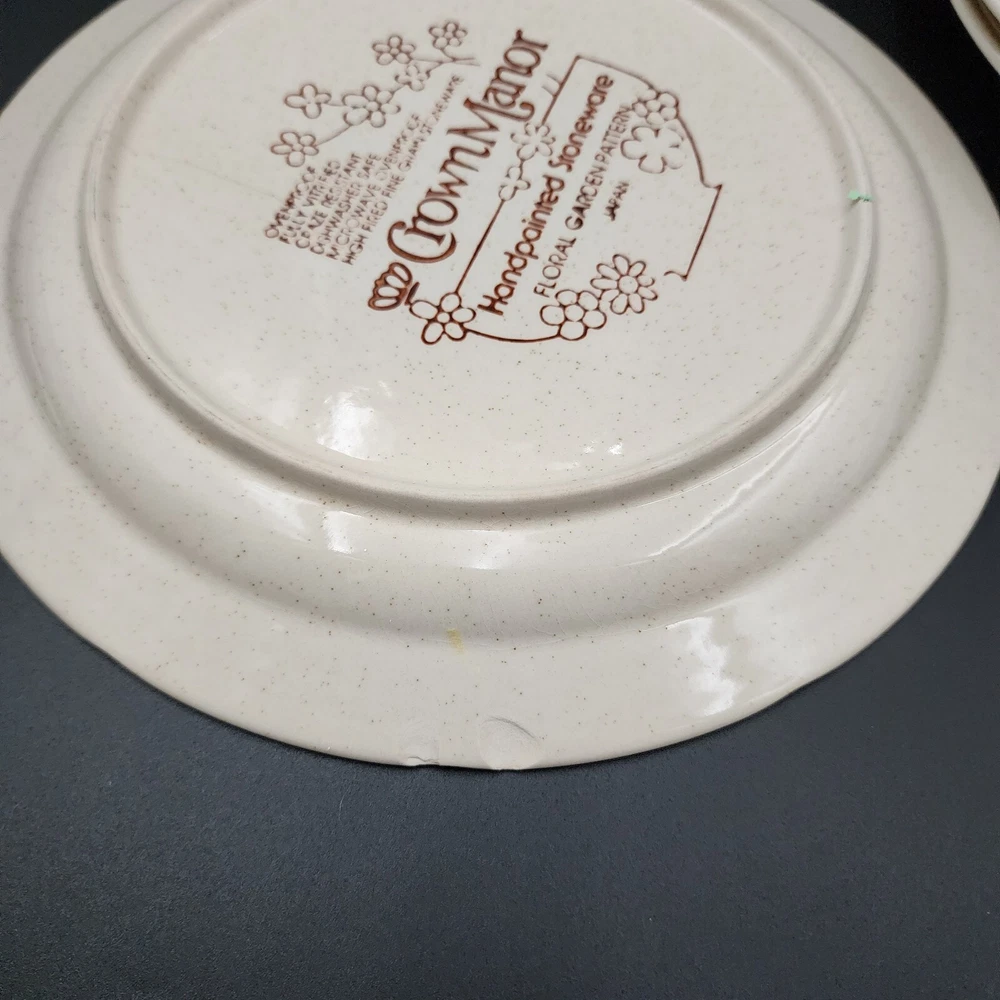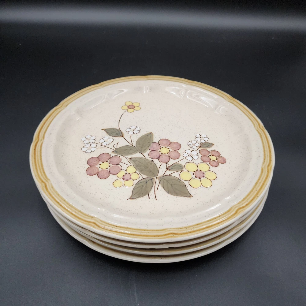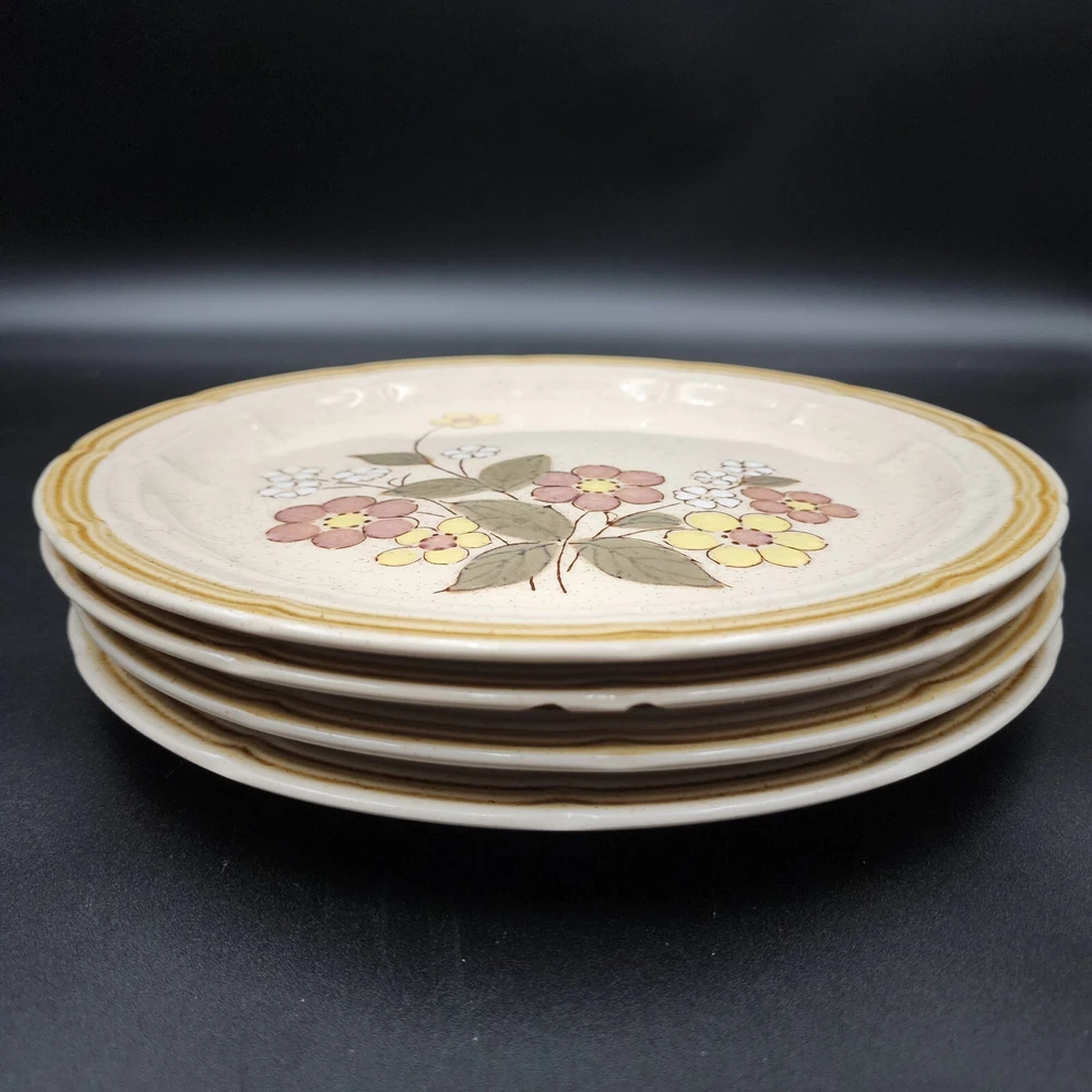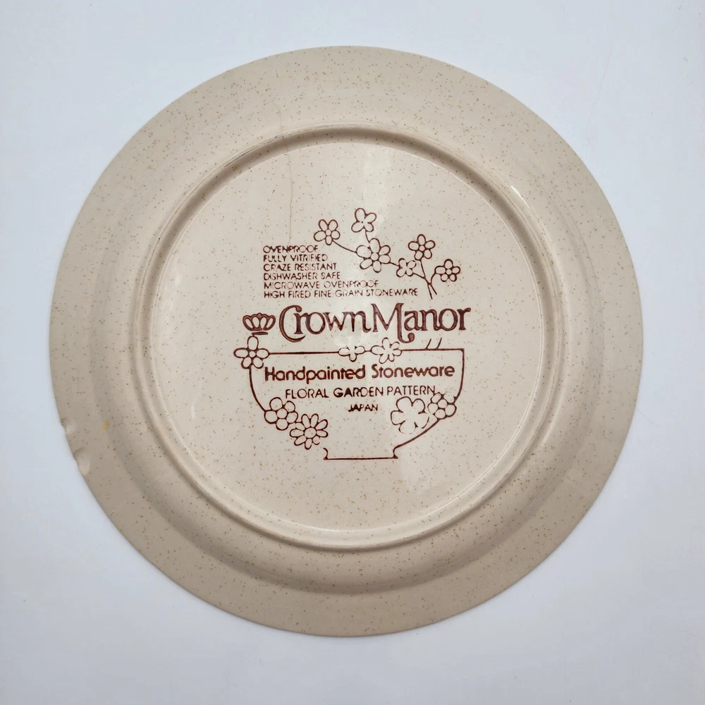 Crown Manor Dinner Plates Floral Garden Hand Painted Stoneware 10.5" Set Of 4