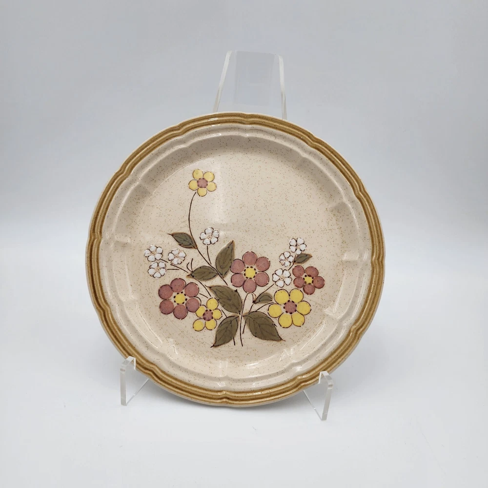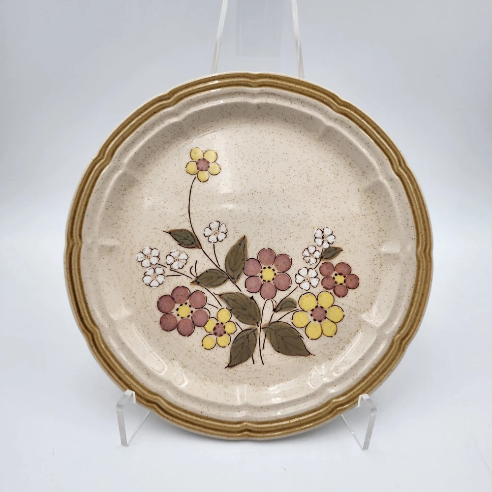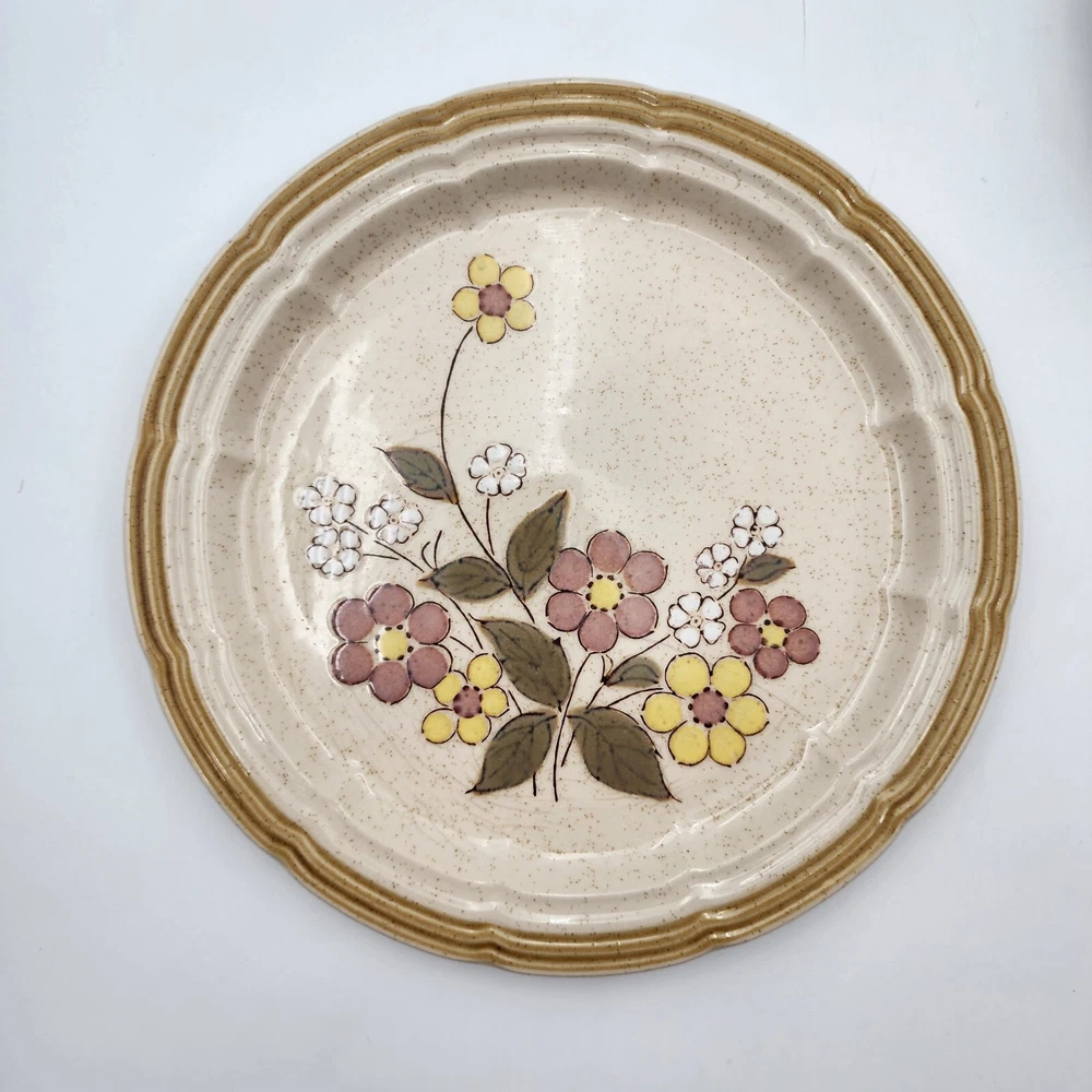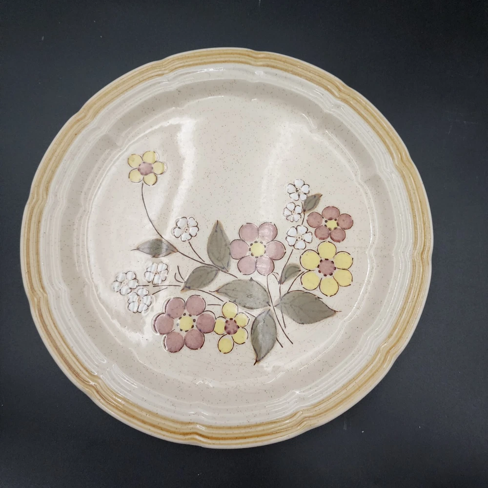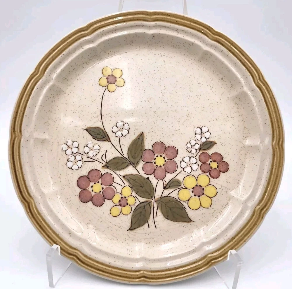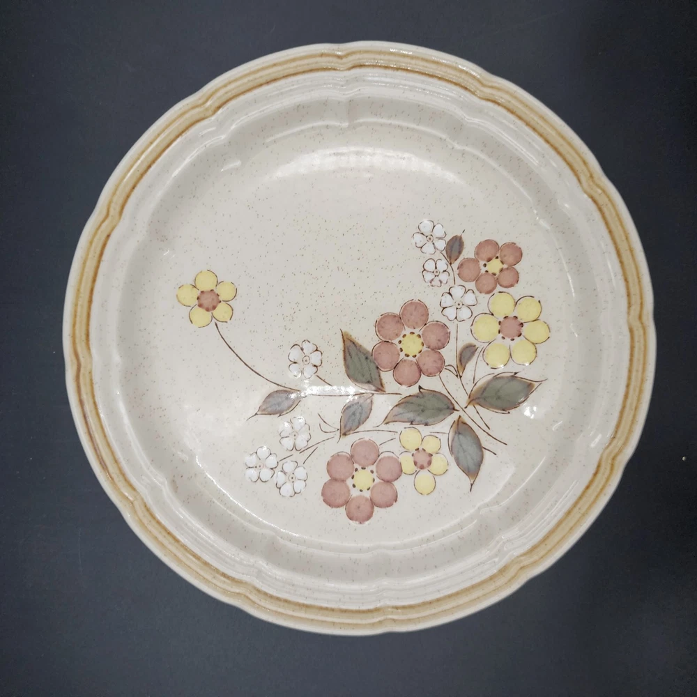 Crown Manor Dinner Plates Floral Garden Hand Painted Stoneware 10.5" Set Of 4