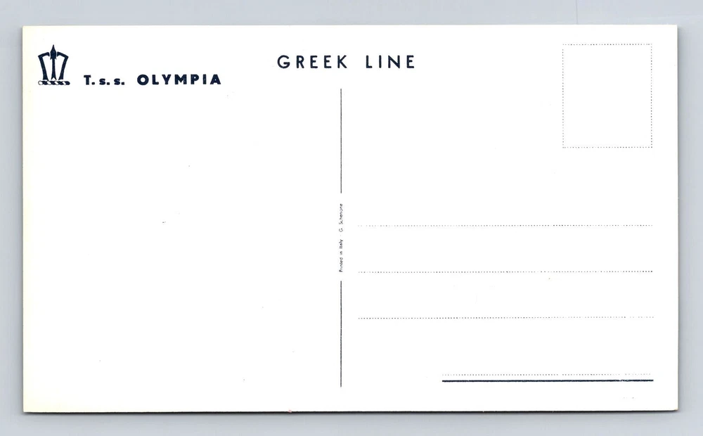 Cruise Ship, T S S Olympia, Greek Line, Vintage Souvenir Postcard