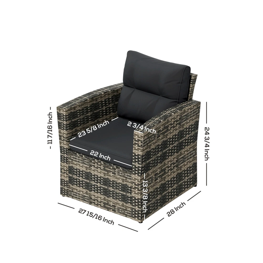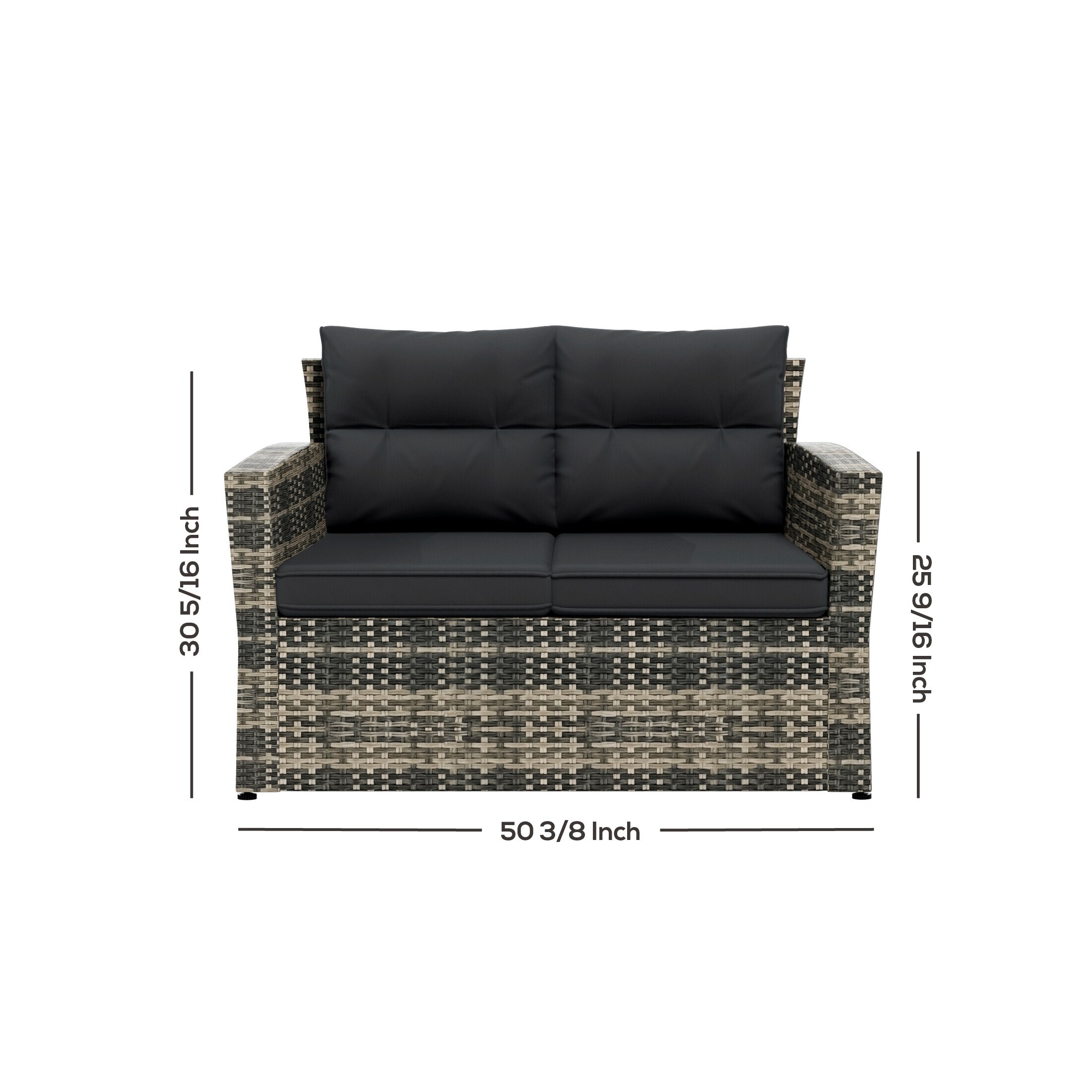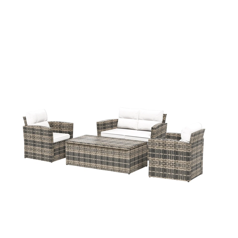 This welcoming four-piece set includes one sofa, two chairs, and one coffee table with plenty of storage space. Built of sturdy resin wicker and including removable seat cushions, this set's upholstery is available in your choice of several gorgeous colors.Features: Includes: (1) Loveseat, (2) Club Chairs, (4) Back Cushions, (4) Seat Cushions, and (1) Storage Table Durable powder coated aluminum prevents rust and staining High density water, UV, weather-resistant resin wicker Zippered cushion covers for easy cleaning Free Shipping Over $49.99* Details Cruz 4-Piece Outdoor Wicker Cushioned Patio Set and Storage Table Product Description: This welcoming four-piece set includes one sofa, two chairs, and one coffee table with plenty of storage space. Built of sturdy resin wicker and including removable seat cushions, this set's upholstery is available in your choice of several gorgeous colors. Features: Includes(1) Loveseat, (2) Club Chairs, (4) Back Cushions, (4) Seat Cushions, and (1) Storage Table Durable powder coated aluminum prevents rust and staining High density water, UV, weather-resistant resin wicker Zippered cushion covers for easy cleaning