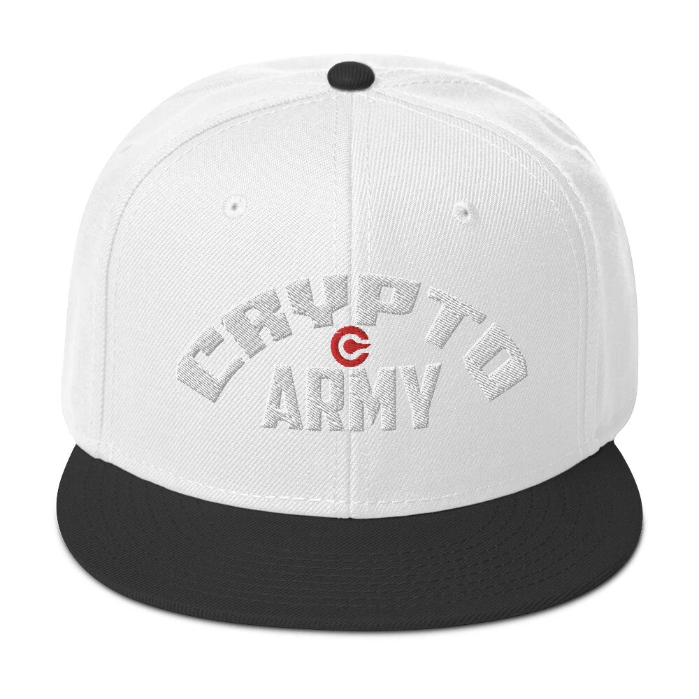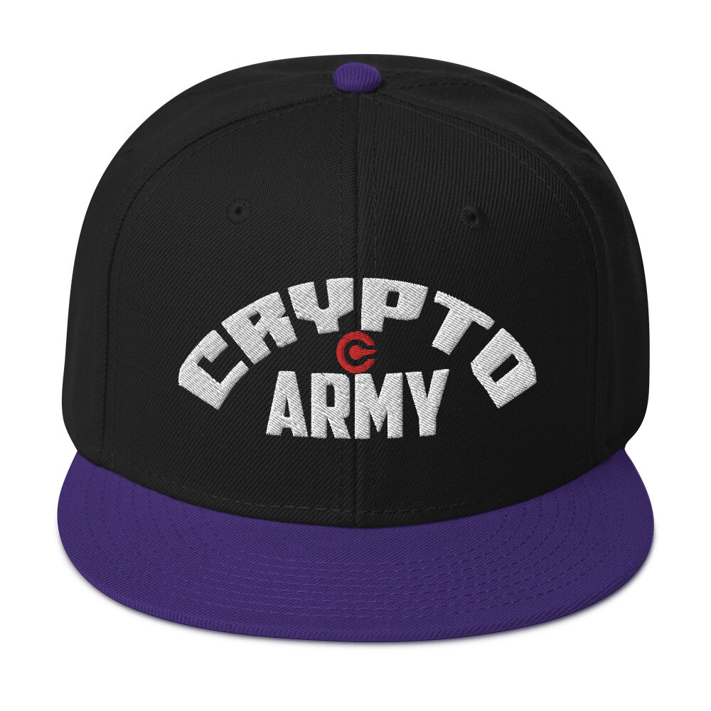 Show your support for the Bull Run this Crypto Season. The more you promote the coins you love, the higher the price will pump. Let the world know its okay to adopt Bitcoin and Altcoins as the future of currency. Crypto Junkie Clothing - Artwork by Glenn lee alan Davis Cryptocurrency inspired Clothing and Accessories. This is the snapback of your dreams! It's structured and high-profile, with a flat visor and a subtle grey under visor. • 85% acrylic, 15% wool • Structured, 6-panel, high-profile • Plastic snap closure • Grey under visor • Head circumference: 22″–24″ (55–60 cm) • Blank product sourced from China This product is made especially for you as soon as you place an order, which is why it takes us a bit longer to deliver it to you. Making products on demand instead of in bulk helps reduce overproduction, so thank you for making thoughtful purchasing decisions! Size guide A (inches) B (inches) C (inches) D (inches) One size 20 ½-24 ¼ 4 ½ 2 ⅝ 7 ⅛ A (cm) B (cm) C (cm) D (cm) One size 52-61.5 11.5 6.7 18