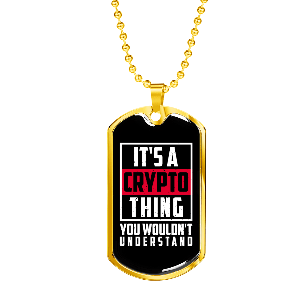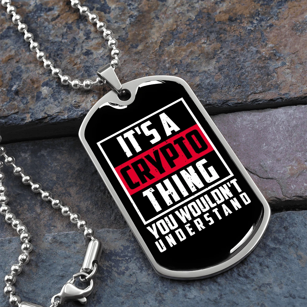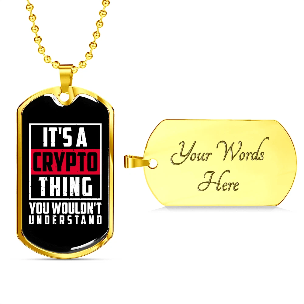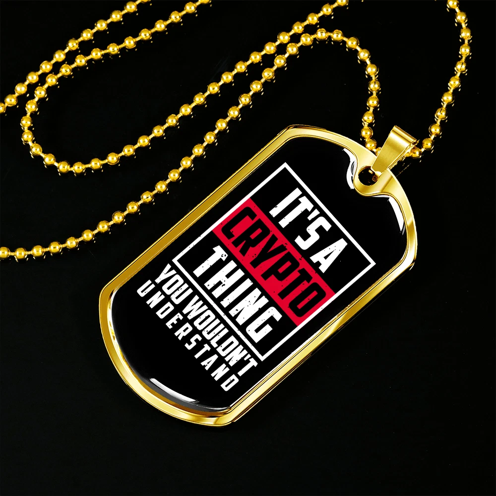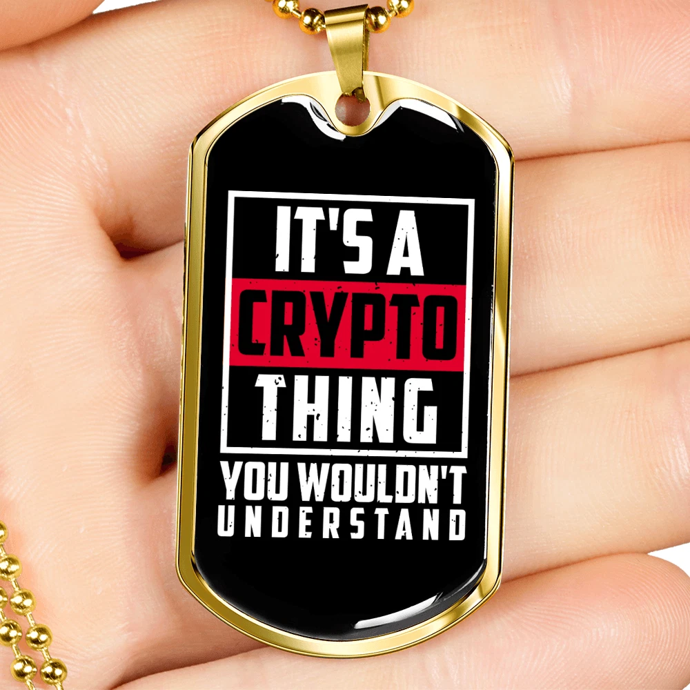 Crypto Necklace Stainless Steel or 18k Gold Dog Tag with 24 Inch Chain