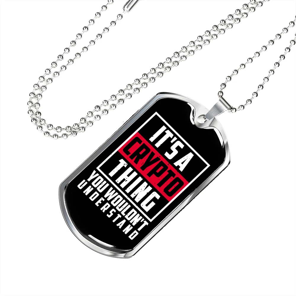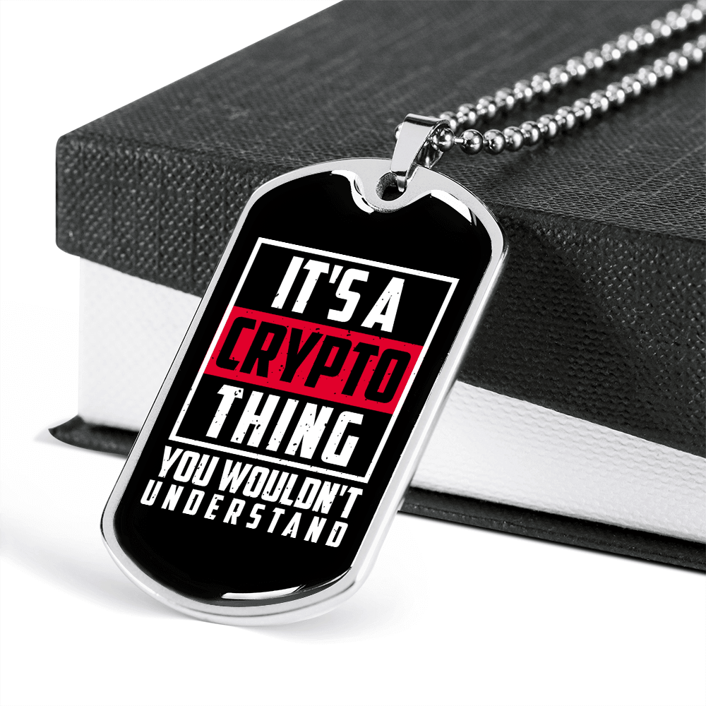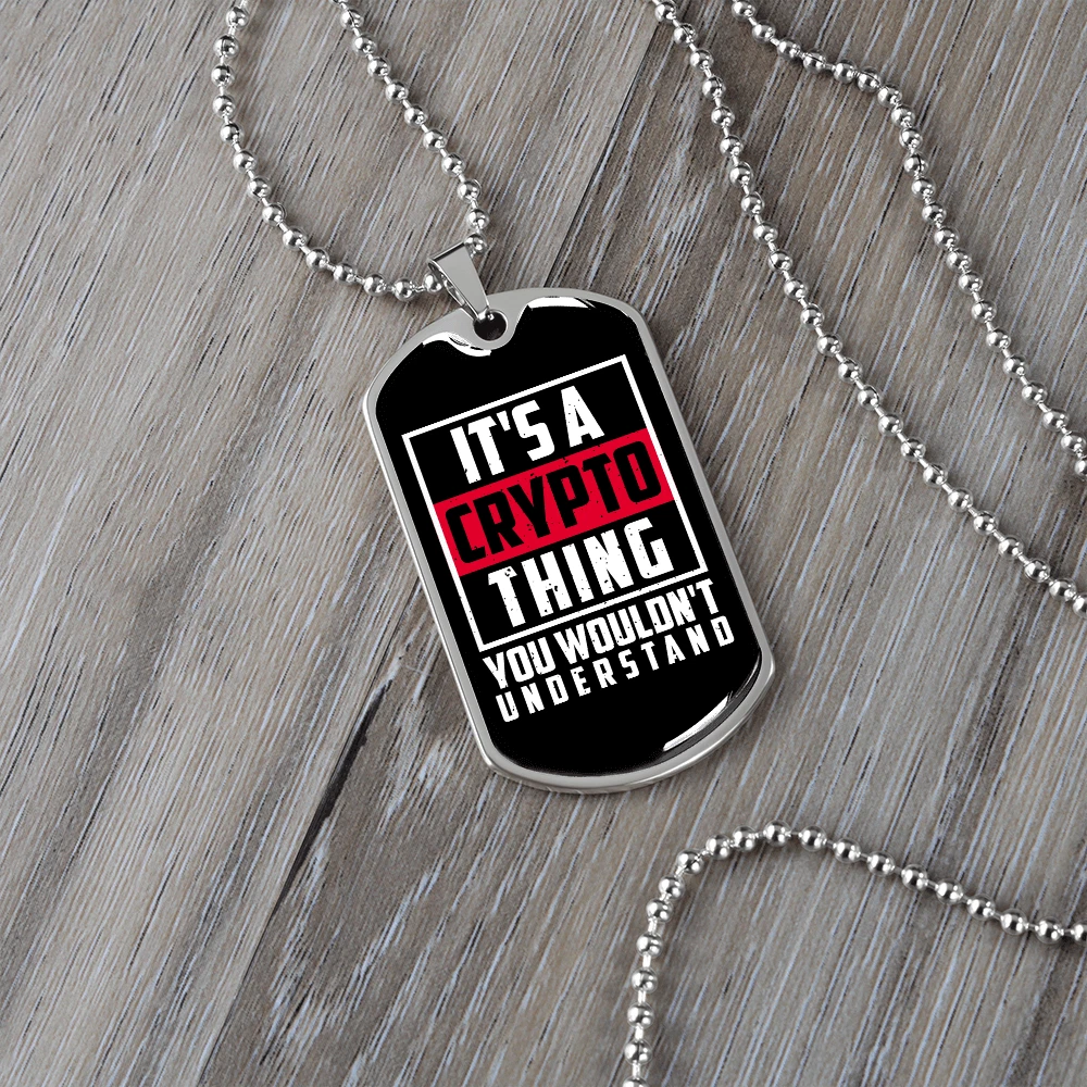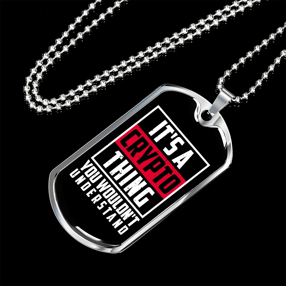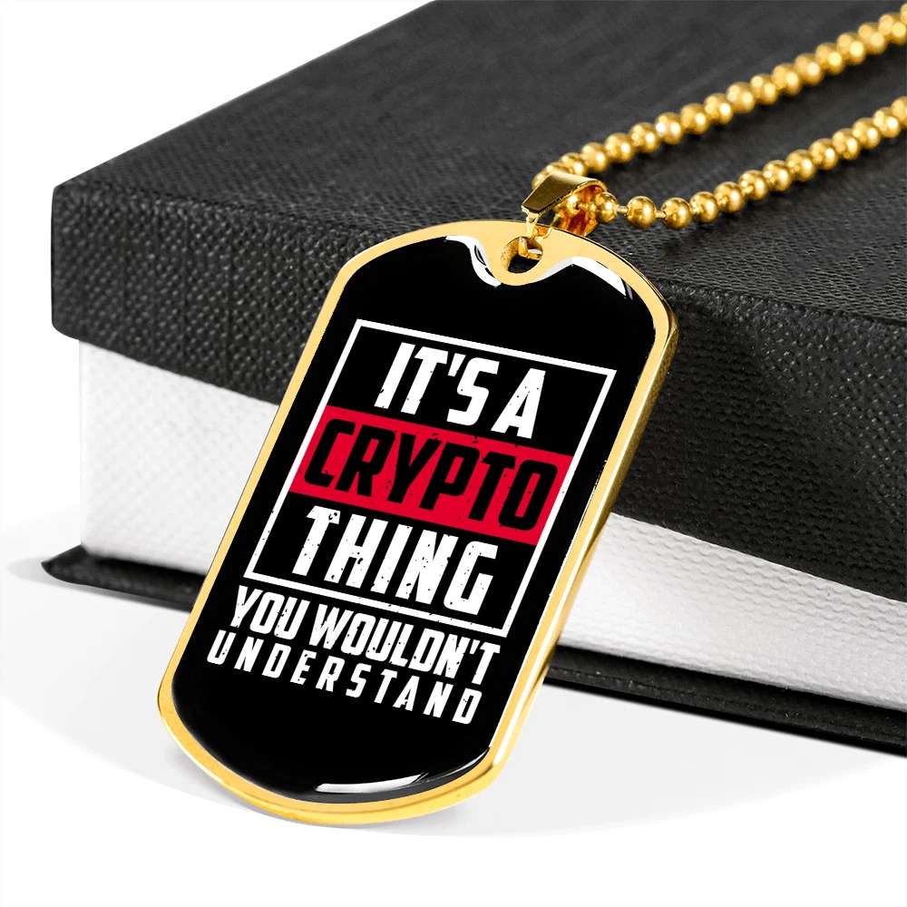 Crypto Necklace Stainless Steel or 18k Gold Dog Tag with 24 Inch Chain