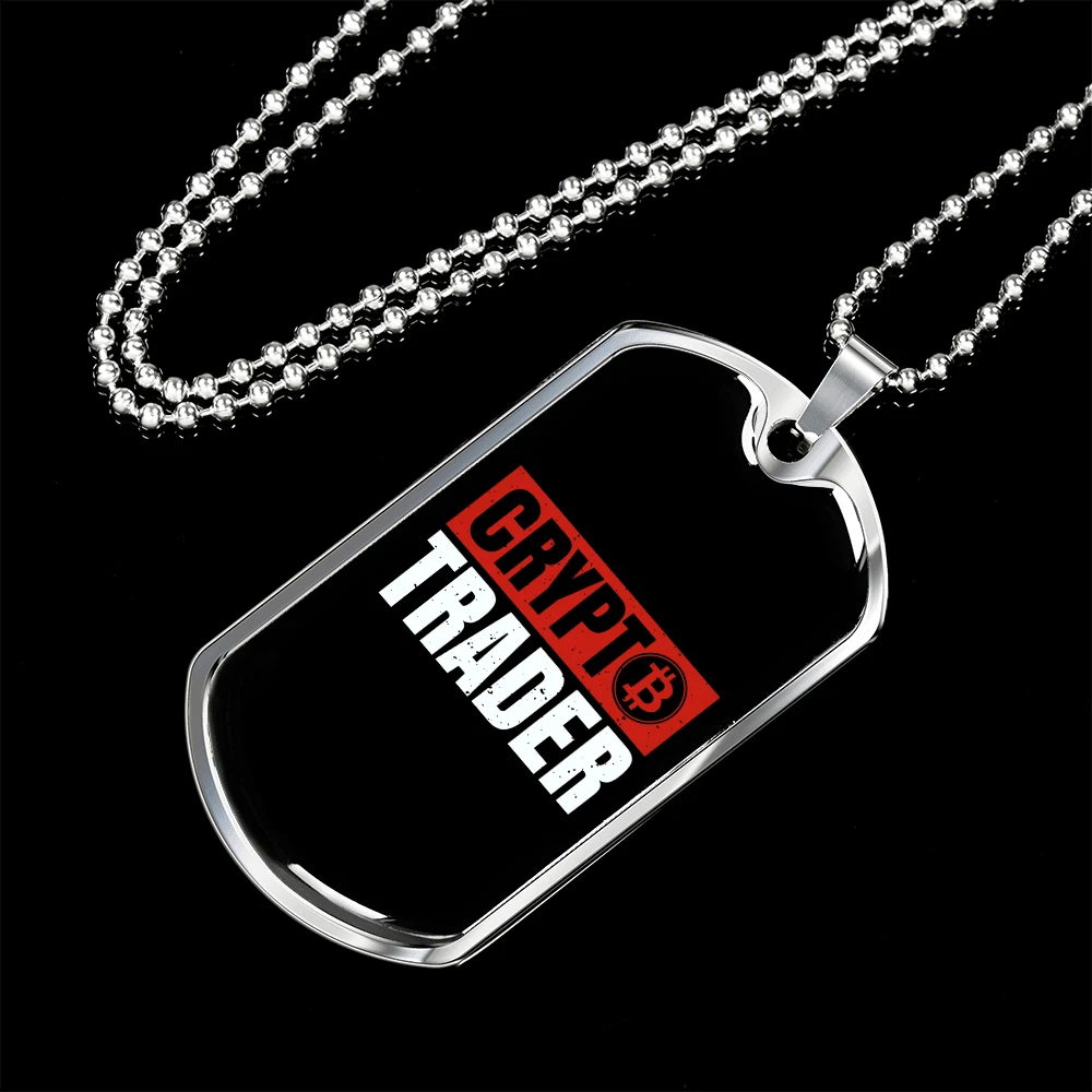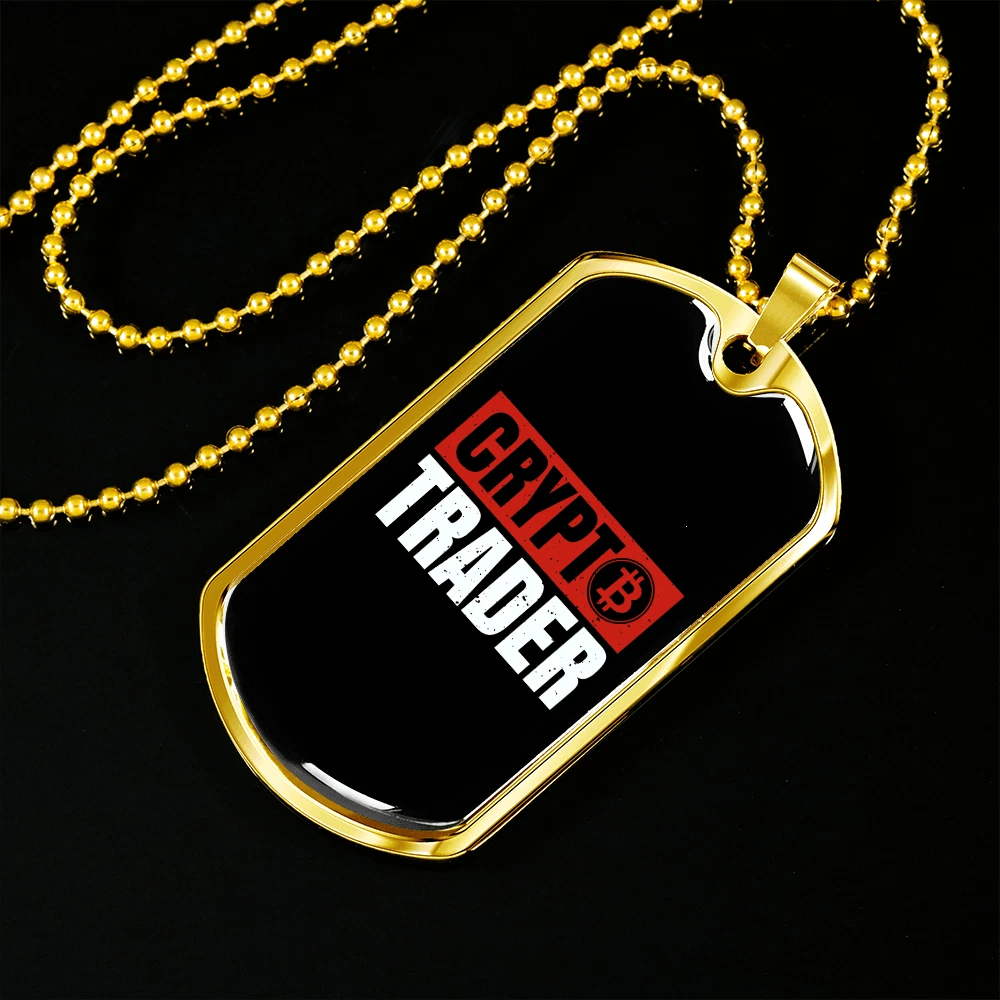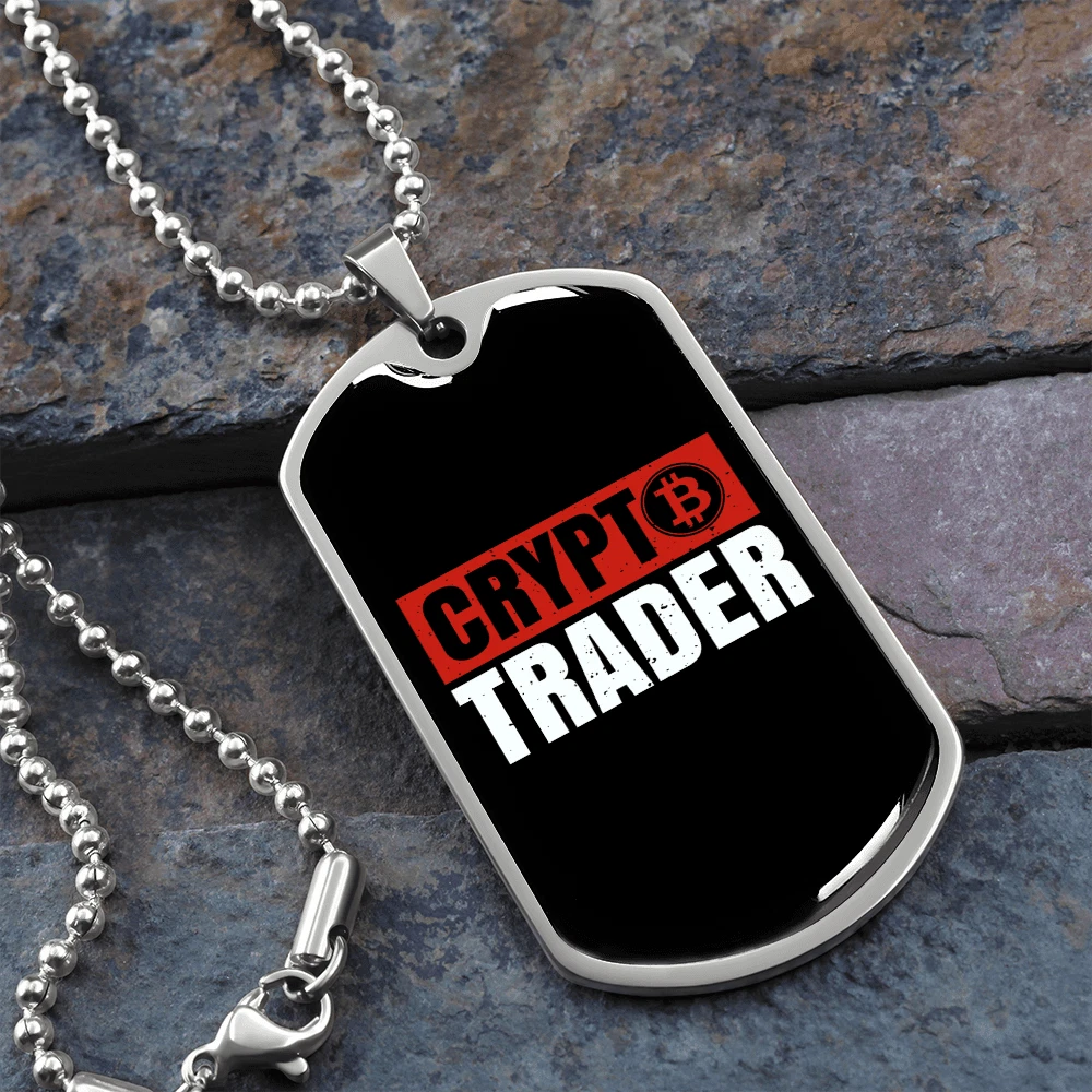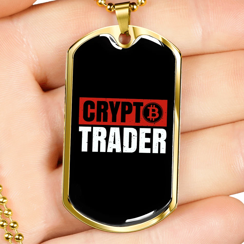 Crypto Trader Crypto Necklace Stainless Steel or 18k Gold Dog Tag 24" Chain